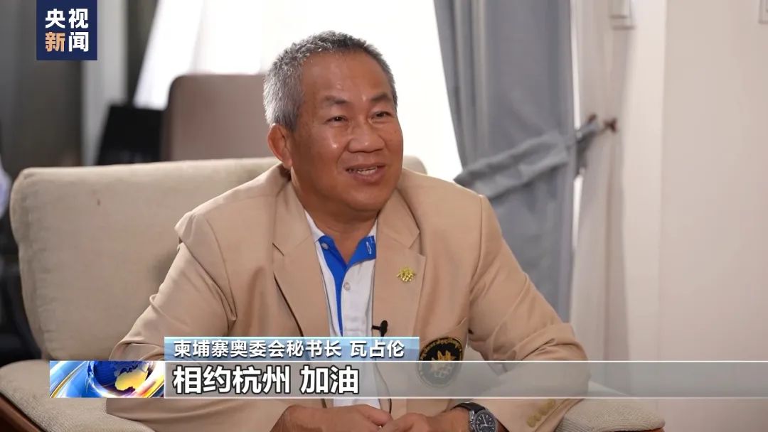 柬埔寨奥委会秘书长瓦占伦:柬埔寨组织了约200人的体育代表团参加此次亚运会,其中有135名运动员,分为17个运动项目,有12个运动项目需要提前在中国进行训练。我们知道中国在体育领域取得了很大成就,并且有着经验丰富的高水平教练。这些教练给我们柬埔寨运动员传授了很好的经验。相约杭州,加油!