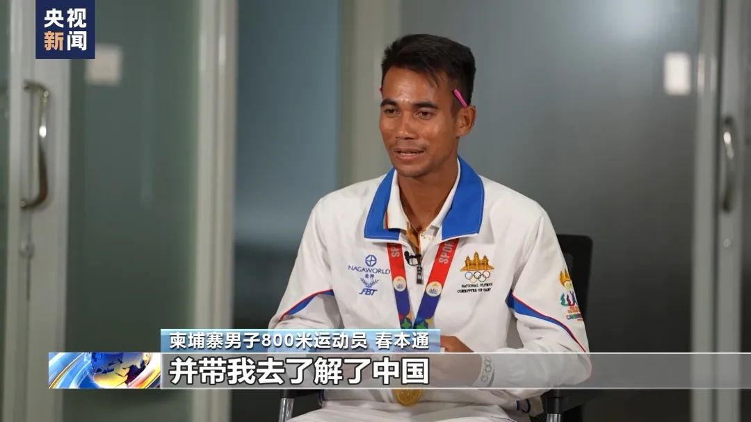 柬埔寨男子800米运动员春本通:我非常感谢中国给我们安排了很好的教练、住宿、饮食等,并带我去了解了中国,了解中国的发展、体育和文明。关于即将到来的杭州亚运会,我会努力训练,竭尽所能。