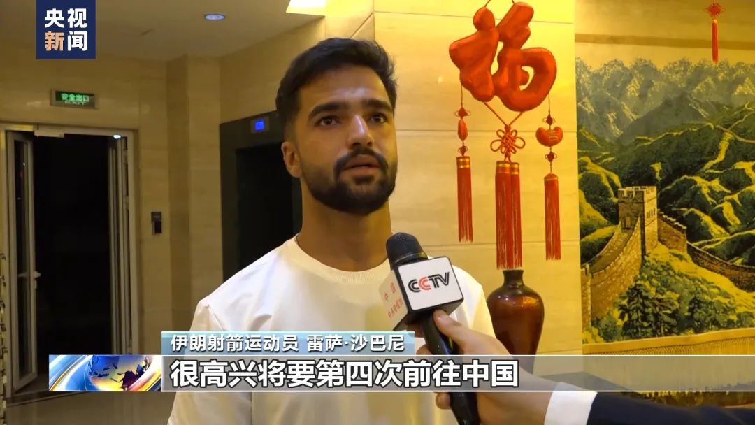 伊朗射箭运动员雷萨·沙巴尼:很高兴将要第四次前往中国。中国一直是举办体育赛事最好的国家。我们迫不及待地想去中国。