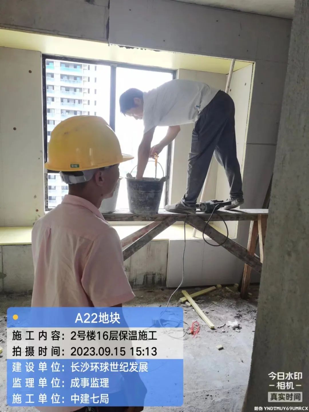 13栋、14栋、15栋、16栋保温、楼梯间腻子、卫生间、阳台、楼梯间找平施工。