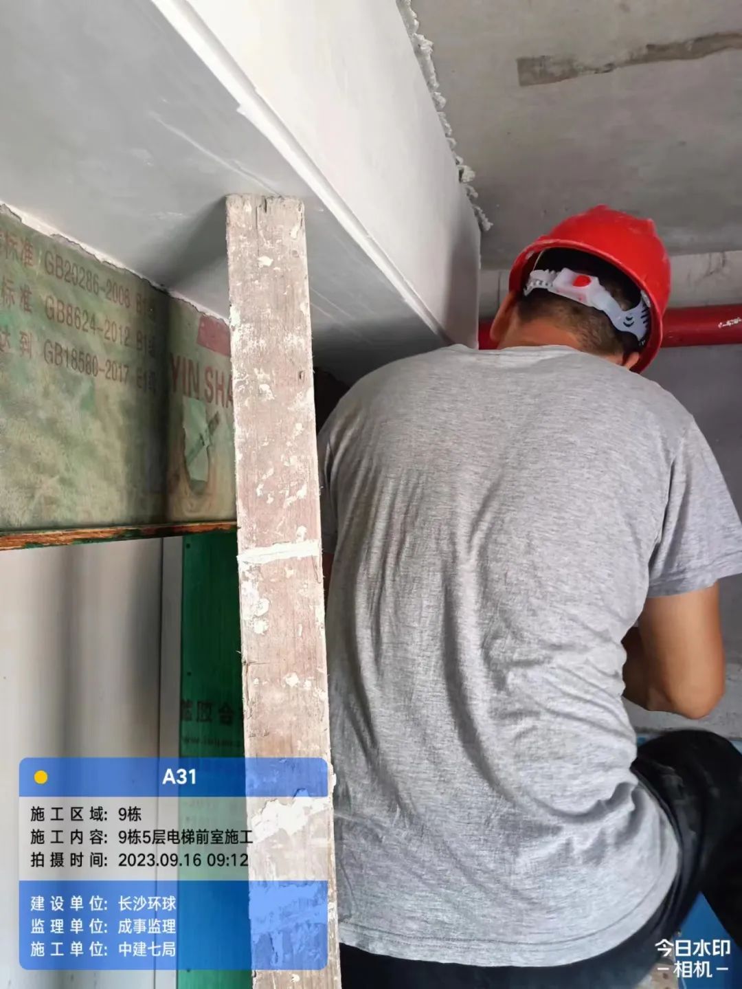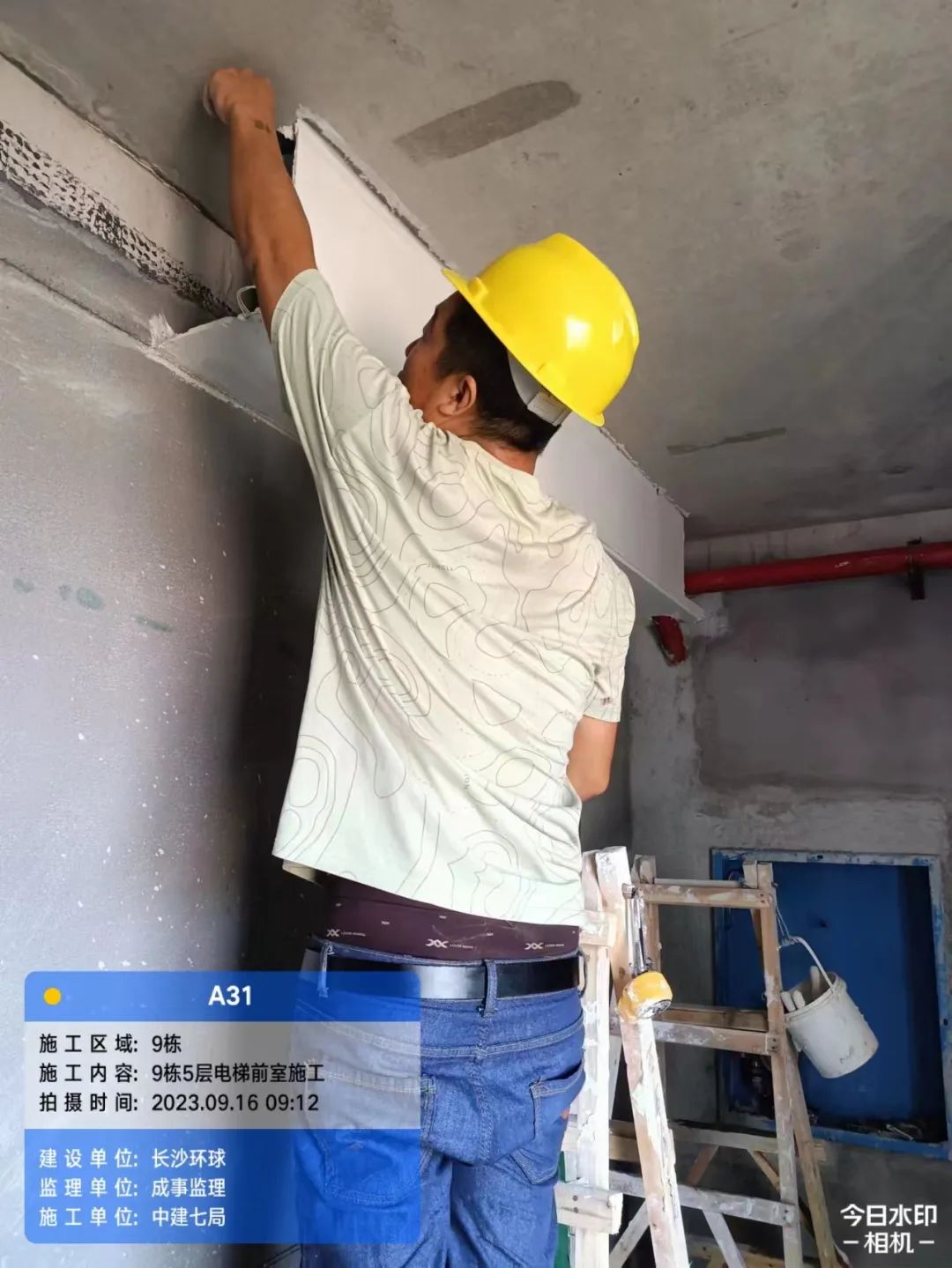 9#栋、7#栋公区精装电梯层面封闭及吊杆安装。