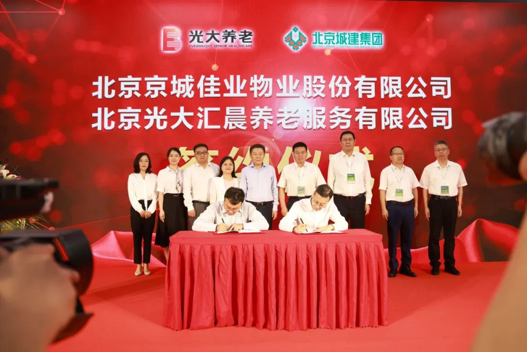 签约仪式上,京城佳业公司党委副书记、总经理杨军表示,京城佳业与光大汇晨同为国有企业,具有相同的理念和担当,双方一直保持着密切的联系。今天的签约将是双方优势互补、信息共享、互利共赢的崭新开始,京城佳业将依托自身物业平台优势和光大汇晨的养老运营优势,开展全方位的深入合作与交流,形成国企双向互动和强强联合,推动养老服务产业的高质量发展,更好地服务国家发展战略,共同引领行业新发展、激发新动能、实现新跨越。