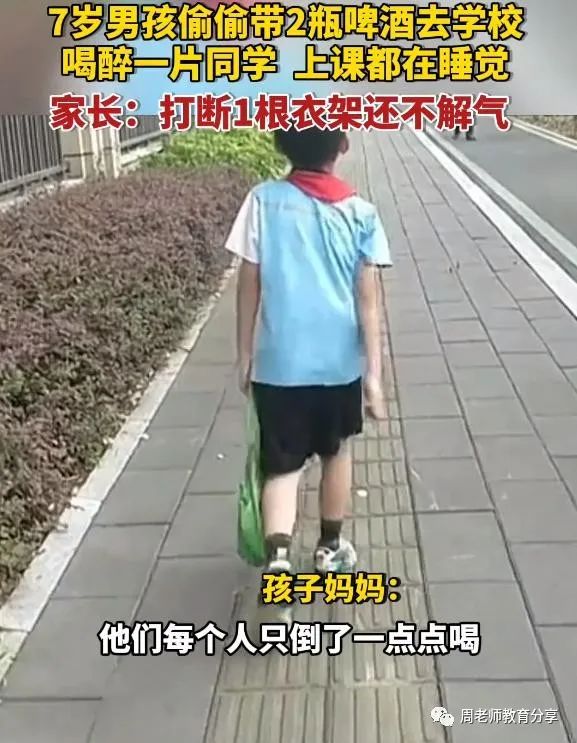 看到这混乱的情况,老师真是又好气又好笑,万幸孩子们喝的酒都不多,睡了一觉之后都没有什么问题。老师找到“罪魁祸首”之后,通知了小明同学的家长。小明的妈妈听到这样的事情,顿时气懵了,在家里狠狠教训了小明一顿,甚至把衣服架子都打断了。