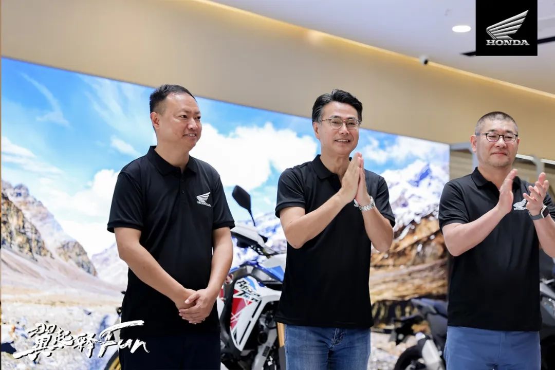 大部分车友完成签到后,本田技研工业(中国)投资有限公司执行副总经理 尾田尾形淳史先生、重庆店董事长刘锐先生与大家见面并进行了简短致辞,希望此次骑行活动的开展能让用户充分感受到Honda摩托车带来的多样化骑行生活的丰富乐趣。