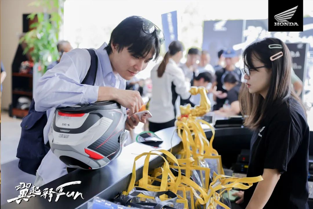 在展馆外场的封闭试驾体验区里,大家终于可以放下循规蹈矩,将佛系的日常模式转换成发挥极致的动力和操控。戴上头盔体验速度与激情的快感,转动油门感受引擎的躁动轰鸣,节奏与快乐的画面在摩博会外场的Honda体验场地不断上演。