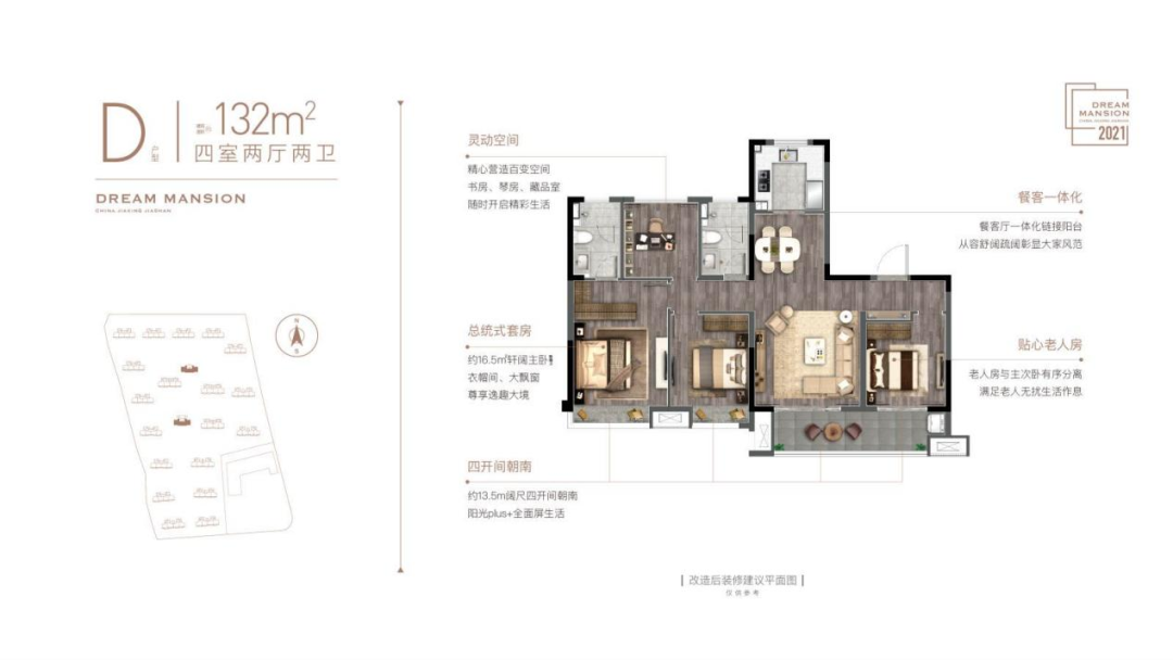 三代同堂,值选四房,只有足够大的生活空间,才能承载整个家庭的幸福,给父母舒适的晚年,给爱人想要的快乐,给孩子自在的童年。
