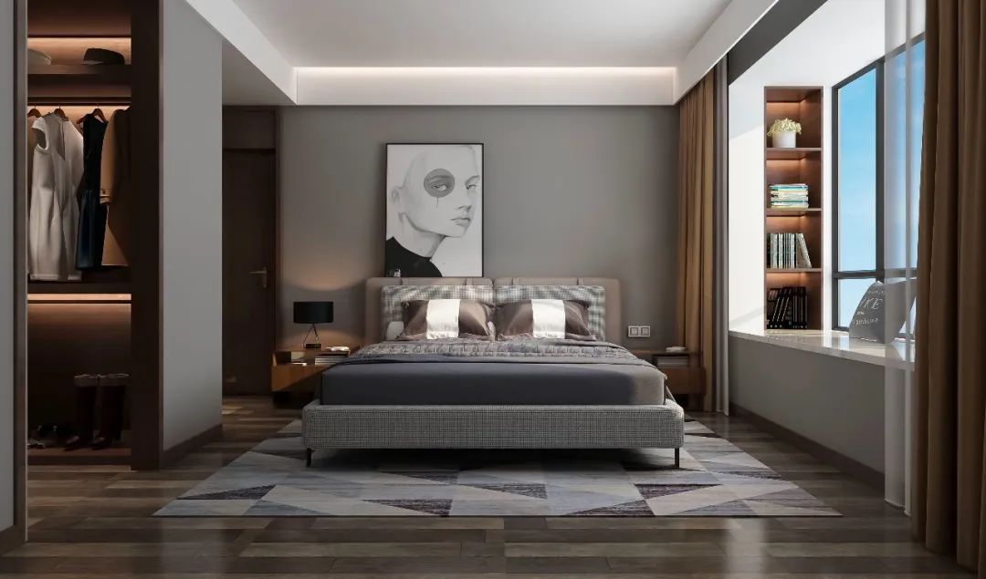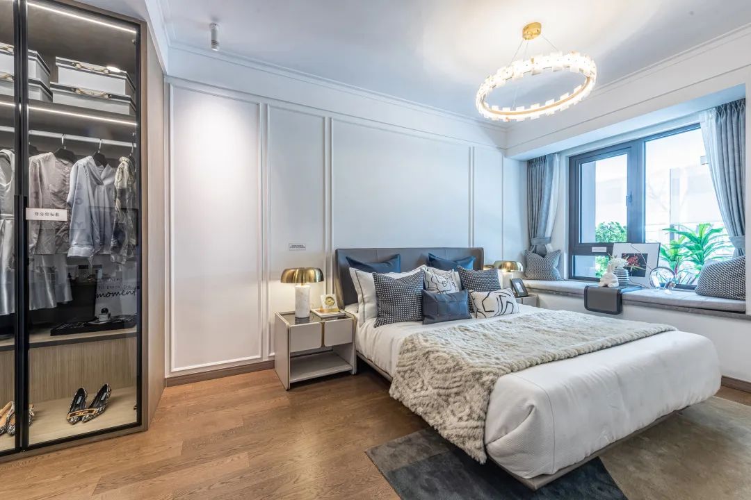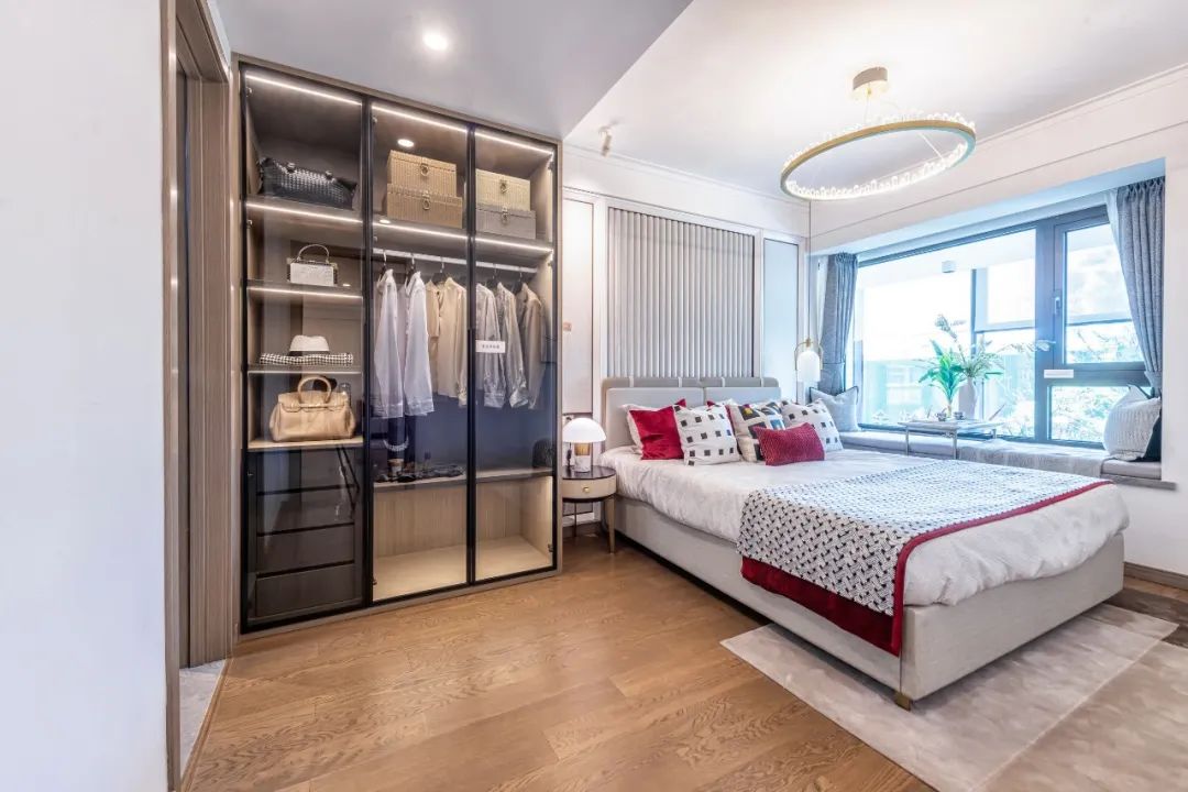 阔绰主卧空间,预留独立空间,可作为衣帽间或衣柜+书桌的组合,又或是给爱人准备一个精致化妆台,空间再小也能承载浪漫环境,理想生活百般姿态由你定义。