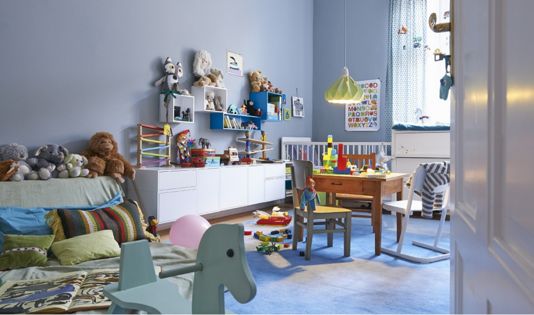 三口之家,两个房间在使用上会有诸多不便,一个房间要做宝宝用品的储藏室,一个空间需要做宝宝的成长空间,根据不同年龄段设置为爬行区、学步区、学习区等。