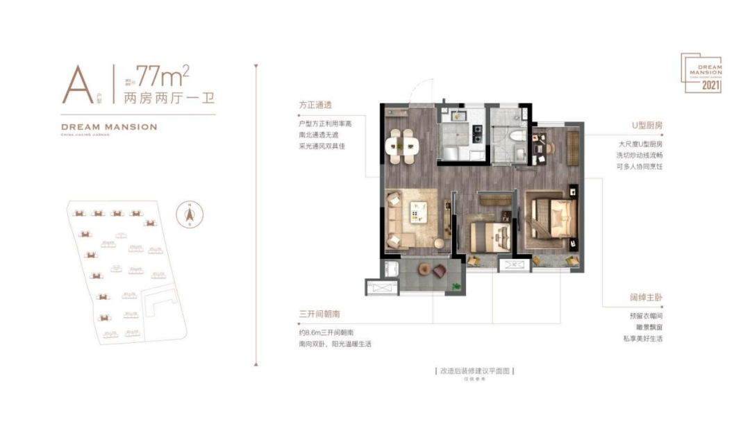 精致的77㎡两房户型,更适合单身或两人家庭,在属于自己的空间里,为梦想奋斗。