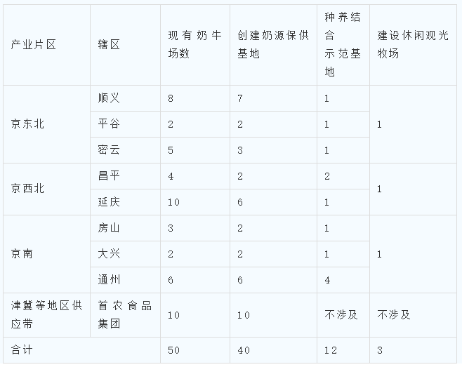 北京市奶业高质量发展行动方案(2023—2027年)奶业高质量发展,是本市农业农村现代化和种业之都建设的重要内容,关乎首都基本保障、民生福祉和农民增收,对于落实北京城市战略定位具有重要意义。北京奶牛育种极大地推动了我国牛群遗传改良,北京牛奶文化已成为都市农耕文化的重要组成部分,经过60多年的建设,北京“三元牛奶”已成为全国知名品牌。为严格落实北京城市总体规划,推动京津冀协同发展,实现本市奶业高质量发展,提高首都乳制品供给安全,特制定本行动方案。以习近平新时代中国特色社会主义思想为指导,全面贯彻落实党的二十大精神,紧紧围绕首都“四个中心”功能定位和提高“四个服务”能力水平,以高质量发展为主题,以深化农业供给侧改革为主线,以提高本市奶源供给保障能力、奶牛种业竞争力、绿色生态养殖和生物安全水平为主攻方向,加快构建高效益奶牛产业体系、现代化奶牛种业体系、高水平生物安全防控体系,以集群化、良种化、现代化、智能化、生态化、无疫化、安全化为导向,推动奶牛产业转型升级,全面促进本市奶业高质量发展。优化布局,高质发展。以保障首都市场优质安全乳制品供应为目标,落实京津冀协同发展战略,发挥都市型奶业集群优势,统筹京内及北京首农食品集团有限公司(以下简称“首农食品集团”)在津冀等地区建设的奶业资源,以创建奶源保供基地为基础,补短板、强弱项,提升规模化养殖效率,实现节本提质增效,推动奶业高质量发展。创新引领,内生发展。围绕“四个中心”功能建设和奶业发展重大需求,发挥北京科技资源优势,在奶牛育种、健康养殖、疫病防控、低碳环保、产品创制等基础研究及关键技术等方面实现原创突破,抢占竞争制高点,提升产业链创新和先导示范水平,为奶业转型升级增强内生动力。转型升级,绿色发展。贯彻绿色发展理念,推进高标准绿色低碳发展,综合考虑产业发展实际、环境承载能力和首都消费需求等因素,合理布局,推动种养结合、资源循环利用、休闲观光等都市型绿色奶业发展模式。消费引领,品牌发展。打造区域品牌,发挥消费带动生产发展的引擎作用,加强公益和科普宣传,积极适应首都居民乳品消费结构变化,满足市民“奶瓶子”多元化消费需求,从供给侧促进乳品消费品牌化、功能化、高端化,提升奶业市场竞争力。保障支撑,协调发展。强化各级主管部门、技术支撑单位、社会化服务组织的指导和保障作用,鼓励建设风险共担、利益共享、竞争有序的全产业链奶业融合发展模式,通过契约、相互持股等形式,打造养殖加工利益共同体,熨平奶业周期波动,促进奶业稳定协调发展。到2027年,在京内和津冀等地区创建40个现代化“奶源保供基地”;奶牛总存栏量稳定在12万头左右,生鲜乳年产量达到60万吨以上,本市奶源综合自给率达到50%;奶牛良种覆盖率达到100%,成乳牛年均单产突破10吨;奶牛良种冻精占国产冻精市场份额35%以上;创建一批无“布鲁氏菌病和牛结核病”无疫小区和净化场。本市奶业现代化水平和奶源自给能力显著提升,养殖加工利益联结紧密,奶业产业链稳定性、创新力和竞争力持续提高。立足现有奶业基础,统筹京内外生鲜乳生产体系,发挥区域协同发展和互补作用,进一步优化本市奶牛养殖总体布局,着力打造“三区一带”,即:京东北(顺义、平谷、密云)、京西北(昌平、延庆)、京南(房山、大兴、通州)3个奶业优势产区和首农食品集团的津冀等地区供应带。在各区现有奶牛规模养殖场基础上,通过改造升级创建30个现代化“奶源保供基地”。首农食品集团要加强津冀等地区供应带的外埠养殖基地建设,目前实际供京的10家外埠奶牛规模养殖场全部纳入本市“奶源保供基地”。落实《农业农村部关于印发新一轮全国畜禽遗传改良计划的通知》,实施奶牛种质创制和品种选育联合攻关,进一步完善奶牛繁育体系建设,支持自主选育优质种牛,加快全基因组选择技术应用,推进以生产性能精准测定为主的奶牛改良计划和社会化服务体系建设。坚持自主培育为主、引进和繁育相结合,政府主导和社会参与相结合,加大良种推广力度,提升良种化水平,提高良种繁育与示范推广能力。落实《农业农村部关于促进农业产业化龙头企业做大做强的意见》,支持首农食品集团奶牛规模养殖场现代化转型升级,促进三元牛奶品牌发展,带动北京奶业自给率、创新力、竞争力持续提高。通过改扩建或多元化投资合作,到2027年,首农食品集团在京内和津冀等地区供应带的奶牛总存栏量达到9万头;自有牧场全部完成改造升级,奶牛规模养殖场设施装备现代化水平大幅提升,达到“布鲁氏菌病和牛结核病”无疫小区或净化场国家标准,全部成为现代化“奶源保供基地”。奶牛良种冻精占国产冻精市场份额35%以上。按照“规模化养殖、标准化生产、智能化管理、生态化运行”的要求,全面打造“智慧牧场”,开展奶牛养殖标准化示范场创建,推动基于物联网、大数据技术的智能统计分析软件终端在奶牛养殖中的应用,提升奶牛养殖机械化、信息化、智能化水平。在京东北、京西北和京南片区,分别打造“养殖、加工、观光”一体的“休闲观光牧场”,提升养殖业为市民生活服务的能力。推进饲草料种植和奶牛养殖配套衔接,提高就地就近保障饲草料适度供应比例,降低饲草料成