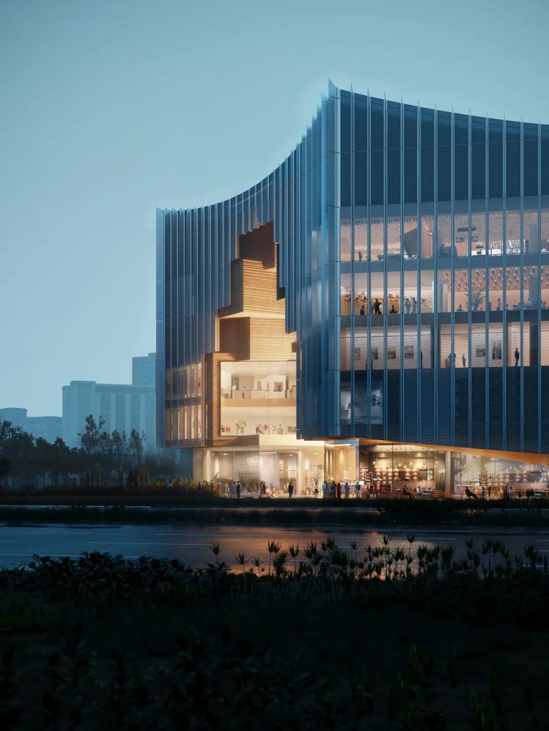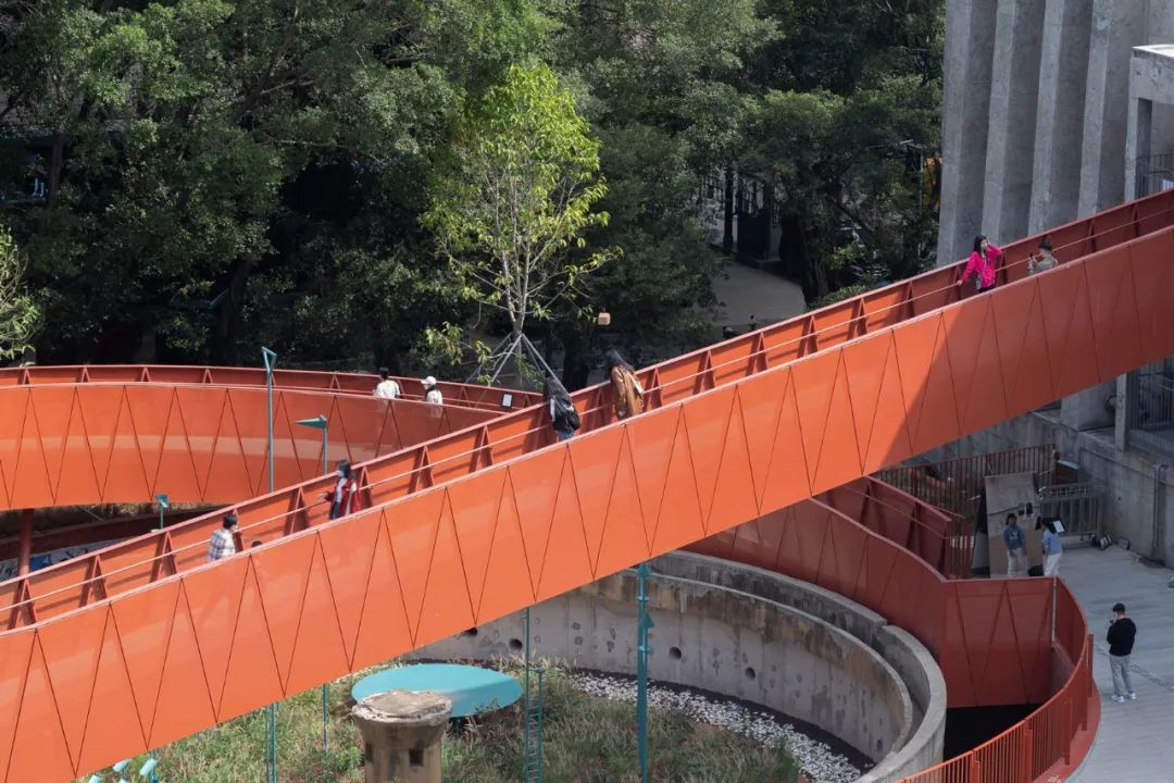 “基座成为一个统一的工业建筑展示平台,外部有展览空间和主题花园,内部有挖空的庭院、通道和休闲区域,创造出一系列连环贯通的空间叙事,”都市实践解释道。