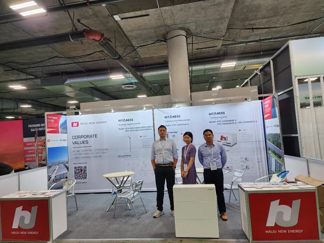 出于对北美储能市场需求的持续看好,海聚新能源携可堆叠户用储能柜、HTC-232kWhAI-A工商业储能一体柜、40尺直流测电池集装箱储能系统三大主打产品首次亮相RE+展会,成为北美储能市场又一颗耀眼的“新能源之星”。现场展出的产品不仅满足了市场对于设计实用、安装简易,性能安全可靠、智能高效的需求,同时可以覆盖户用分布、工商业分布、地面新能源电站等应用场景,真正做到了高效、高能、高质。海聚新能源也希望为北美客户提供全场景产品和清洁能源解决方案,打造新型电力系统能源基础设施。