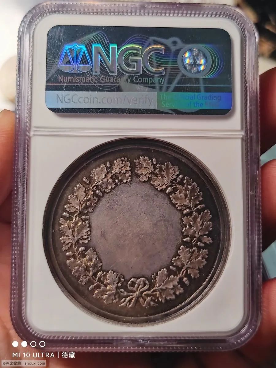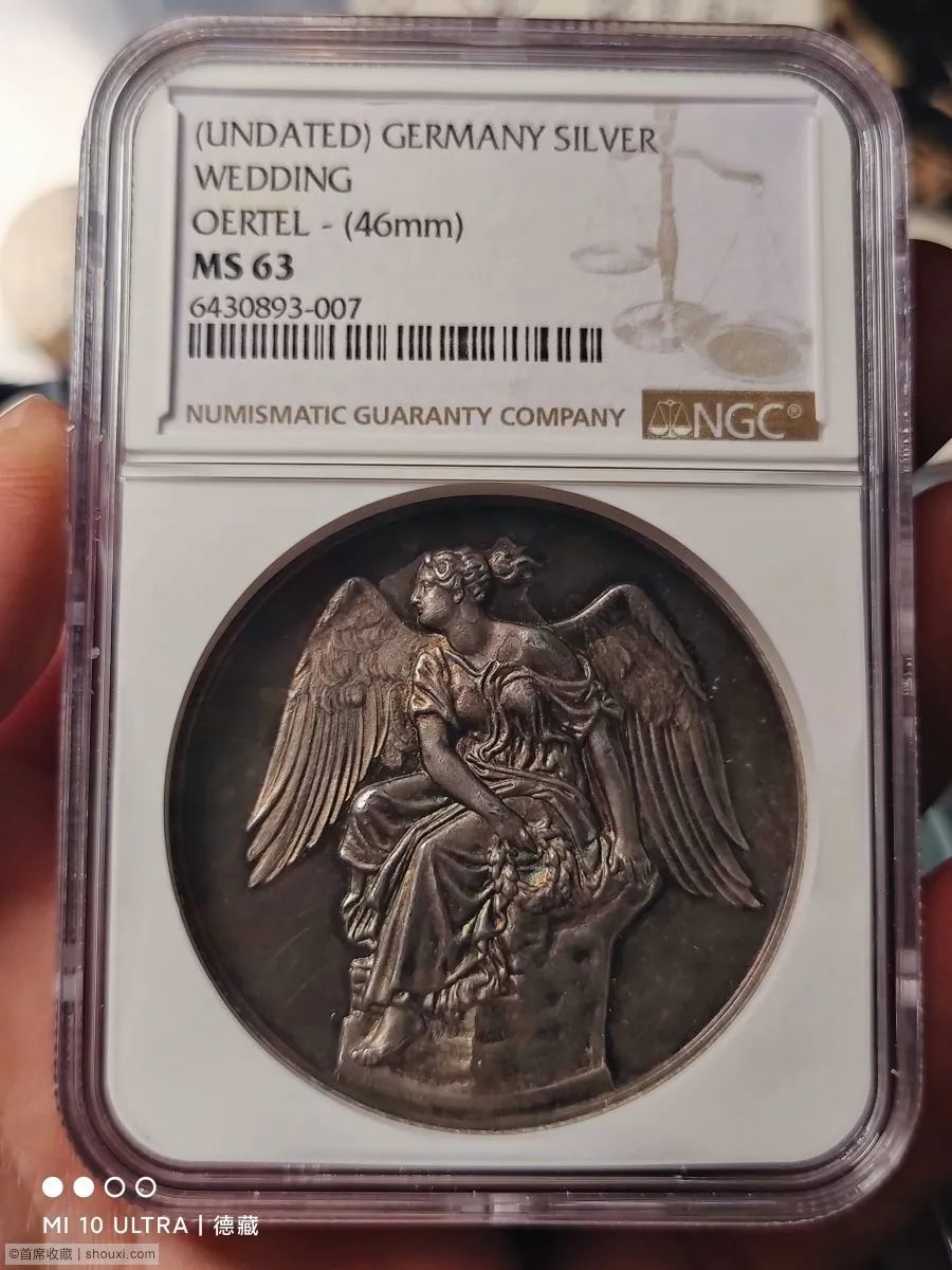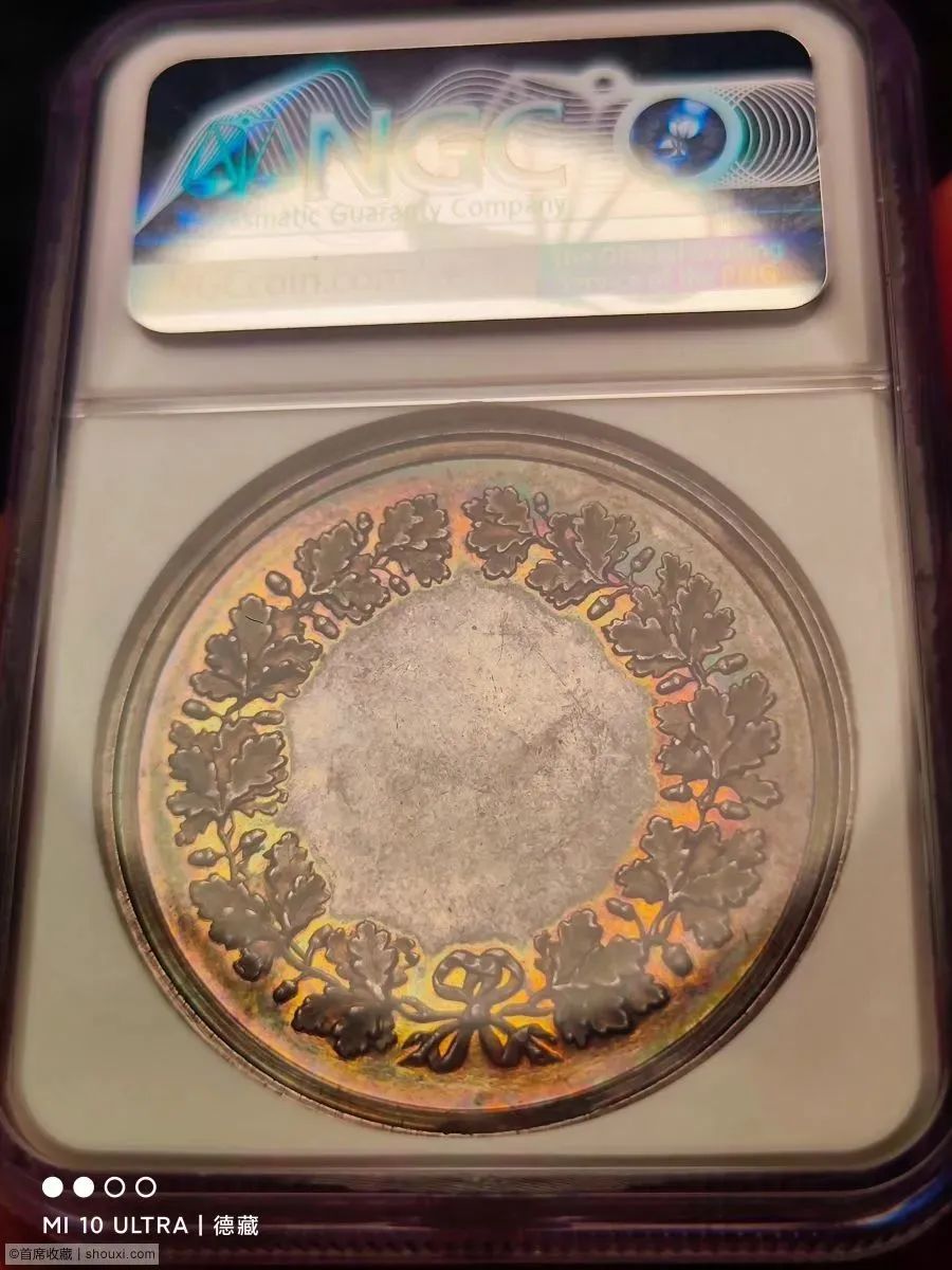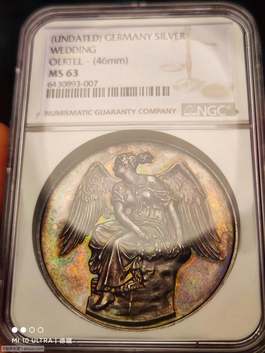 46mm,名家Loos作品,五彩包浆,好品好状态,NGC标错成了结婚纪念章。