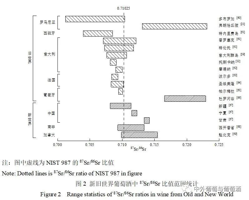 葡萄酒中矿质元素指纹由植物与地质环境共同作用而形成,具有自然属性,装瓶后不易被改变,是良好的产地溯源指标。本文概述了新、旧世界葡萄酒中常量元素、微量元素及稀土元素的种类及含量,总结了近15年矿质元素指纹技术在产地鉴别中的应用。结果表明,不同国家葡萄酒中矿质元素含量及种类存在差异,可作为产地追溯的有效指标,其中碱金属元素(Li、Rb、Cs)及碱土金属(Sr)同位素显示出较强判别能力,可作为后续研究中的重点,为我国葡萄酒原产地保护提供参考。