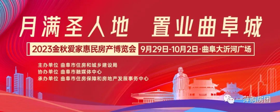 “月满圣人地 置业曲阜城”2023金秋爱家惠民房产博览会将是一场助力民生安居、彰显曲阜市魅力的盛会,更多精彩让我们共同期待!