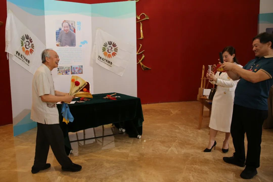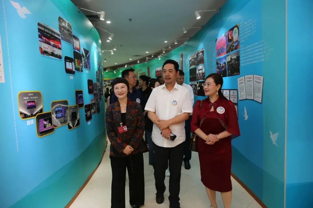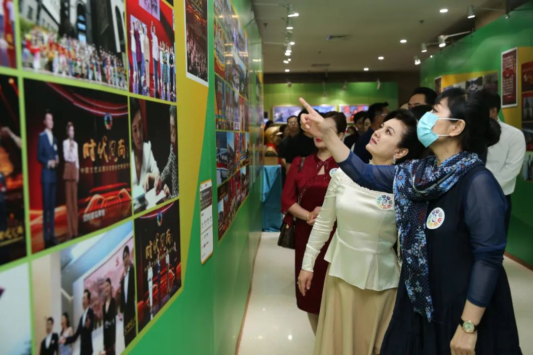 中国文艺志愿者协会副主席刘劲、李仙花与参会代表一同观展中。