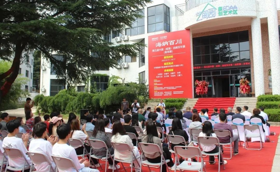 9月17日上午,“海纳百川——第五届中国(威海)油画双年展(推荐展)”在艺甸园美术馆盛大开幕。来自省内外的领导嘉宾,社会团体负责人,企业界、艺术界、媒体界、收藏界代表,威海职业学院艺术学院青年学子等近百人出席开幕仪式。