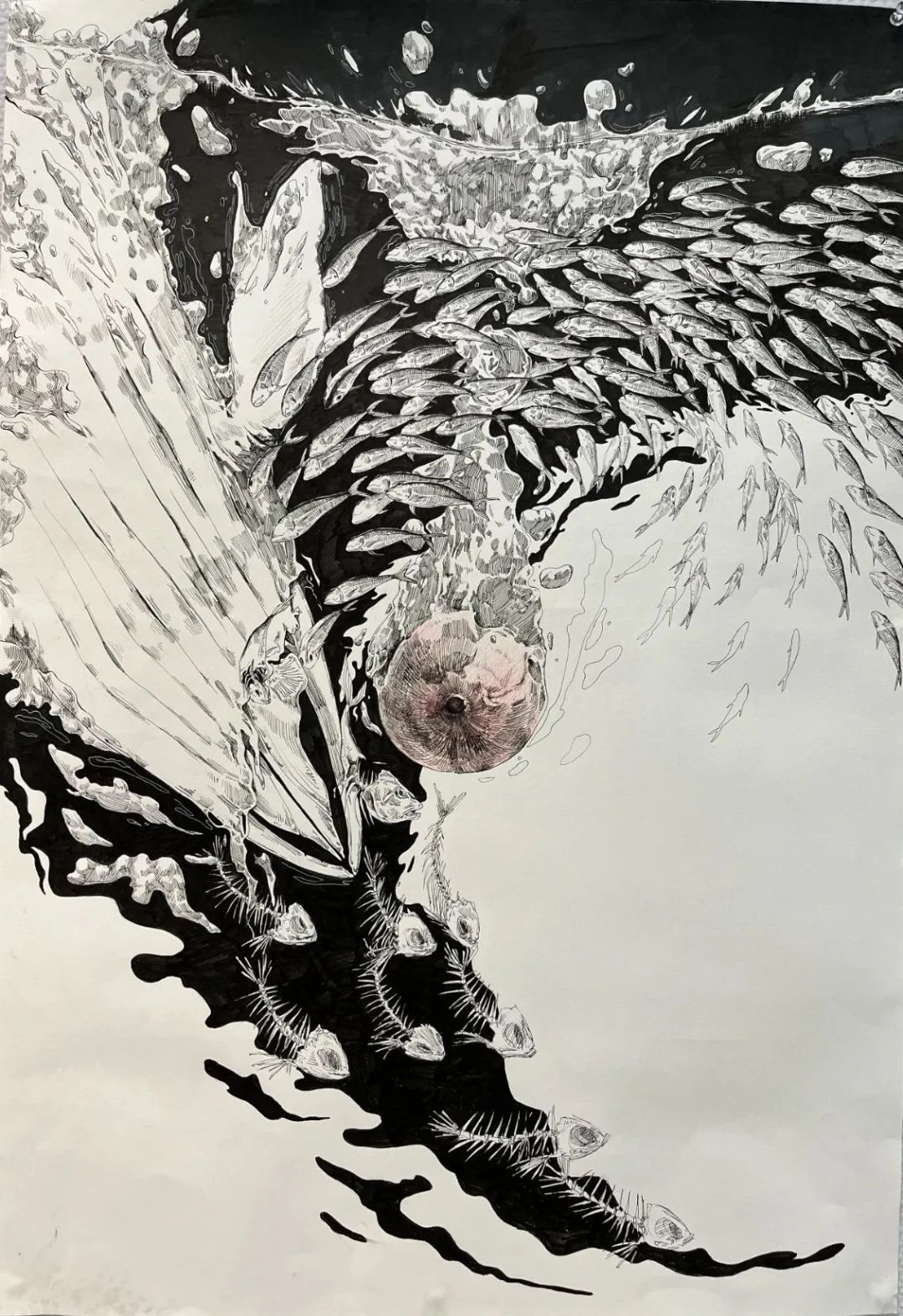 版画 万子龙《遨游》40×80cm 水印版画 指导教师:万子亮