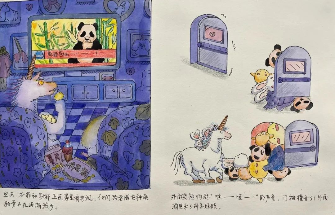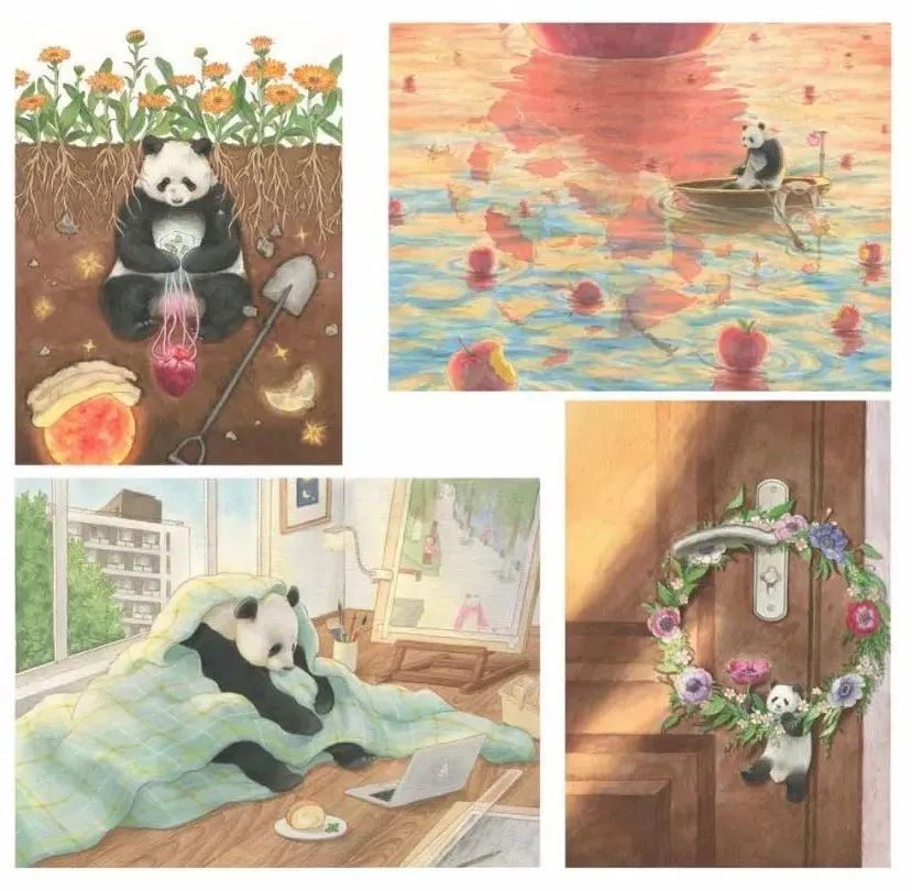 插画 史正希 《水果熊猫》 14.8×21cm 彩铅 指导教师:李小光