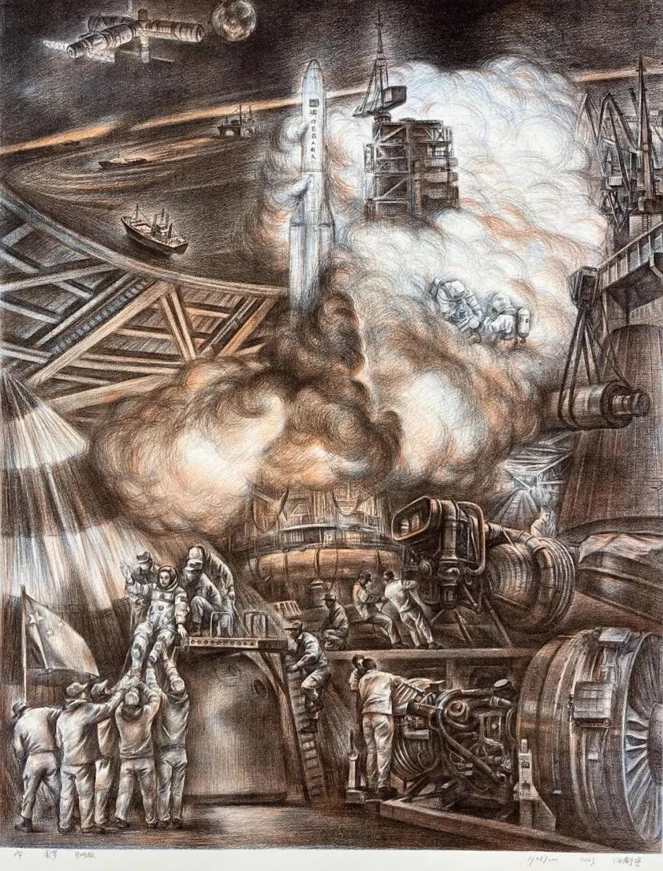 壁画 王懿尘 《线描习作》 78x108(厘米) 铅笔 指导教师:吴静一