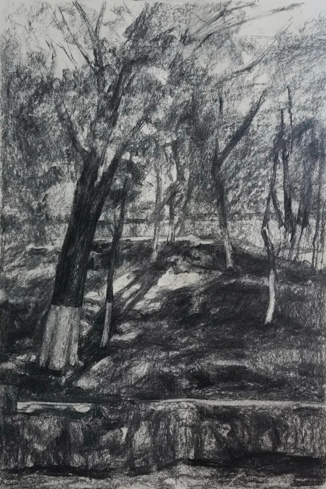 素描 周灵颖《素描风景写生》38x53cm 指导教师:蓝剑
