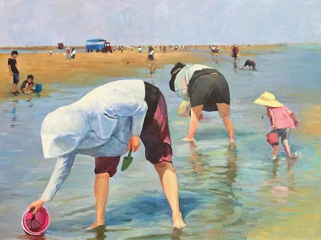 油画 胡思羽《赶海假日》60×80cm 指导教师:章文浩