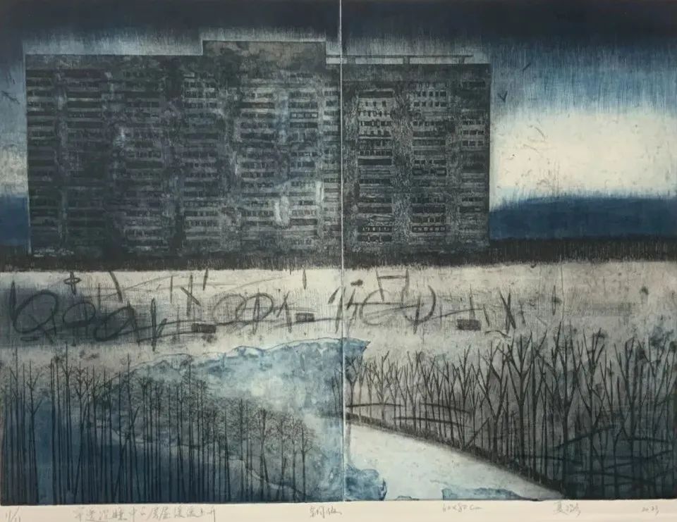版画 夏潞《穿透沉睡中的房屋缓缓上升》 铜版 60x80㎝ 指导教师:刘波(小)
