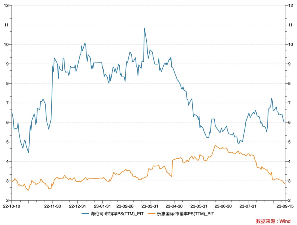 图:海伦司与乐惠国际PS(TTM)走势;来源:Wind*免责声明: