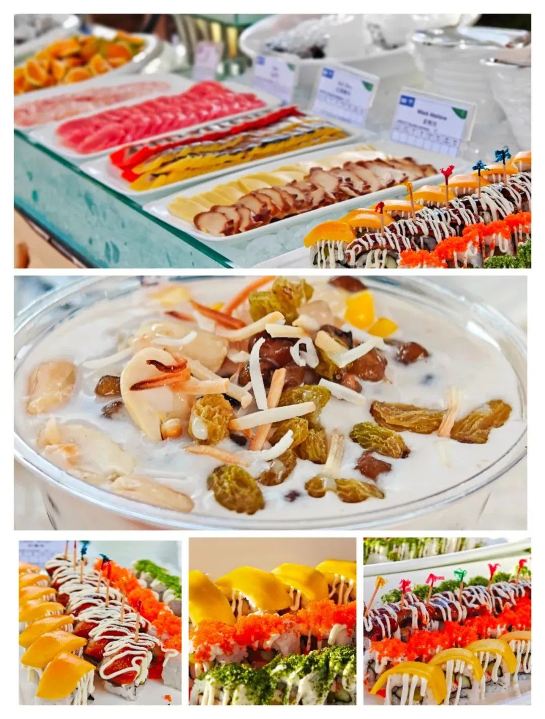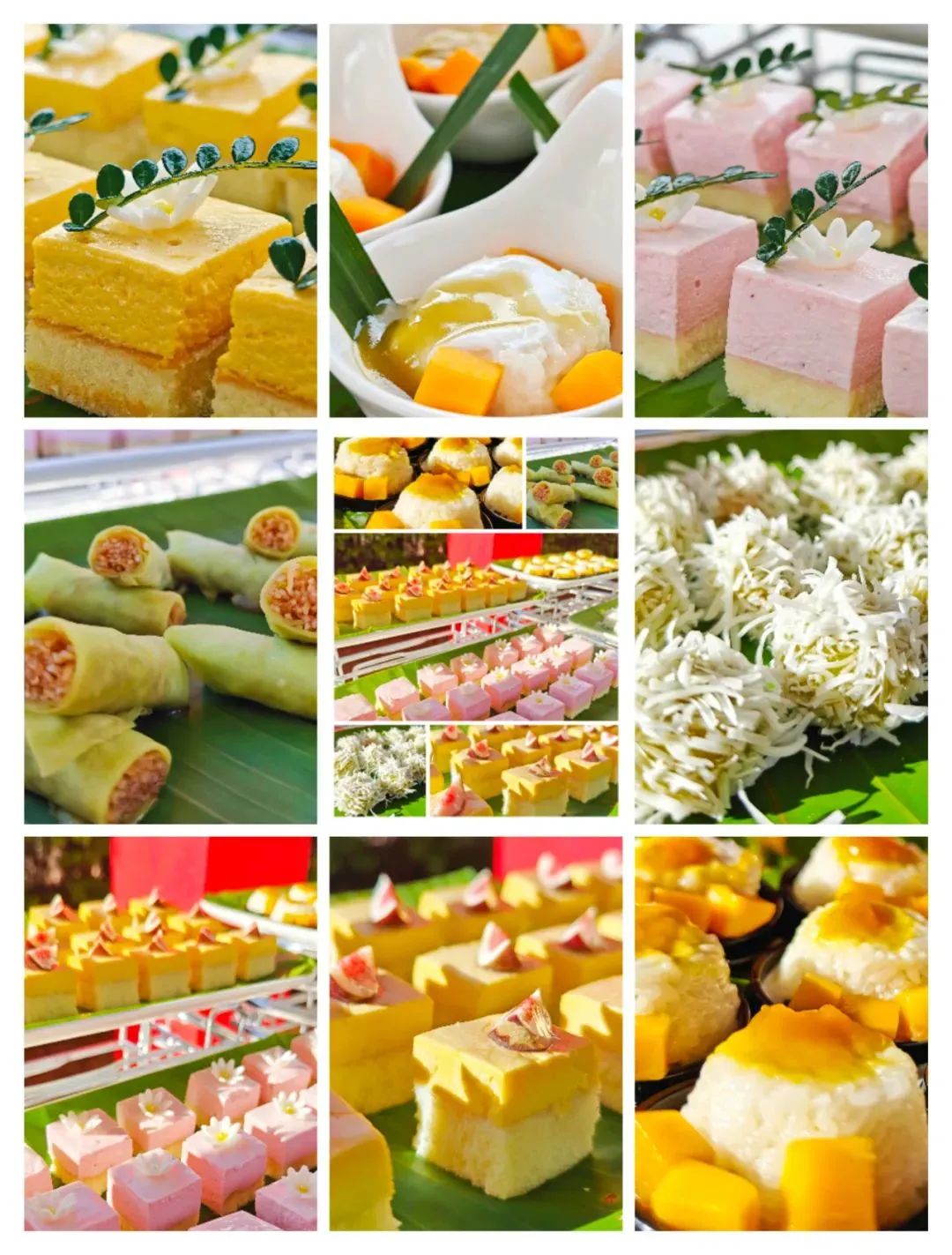 芒果糯米饭,香兰椰丝卷,椰丝糯米球,草莓慕斯蛋糕,芒果蛋糕,巧克力蛋糕,提拉米苏,抹茶瑞士卷……有颜有料!