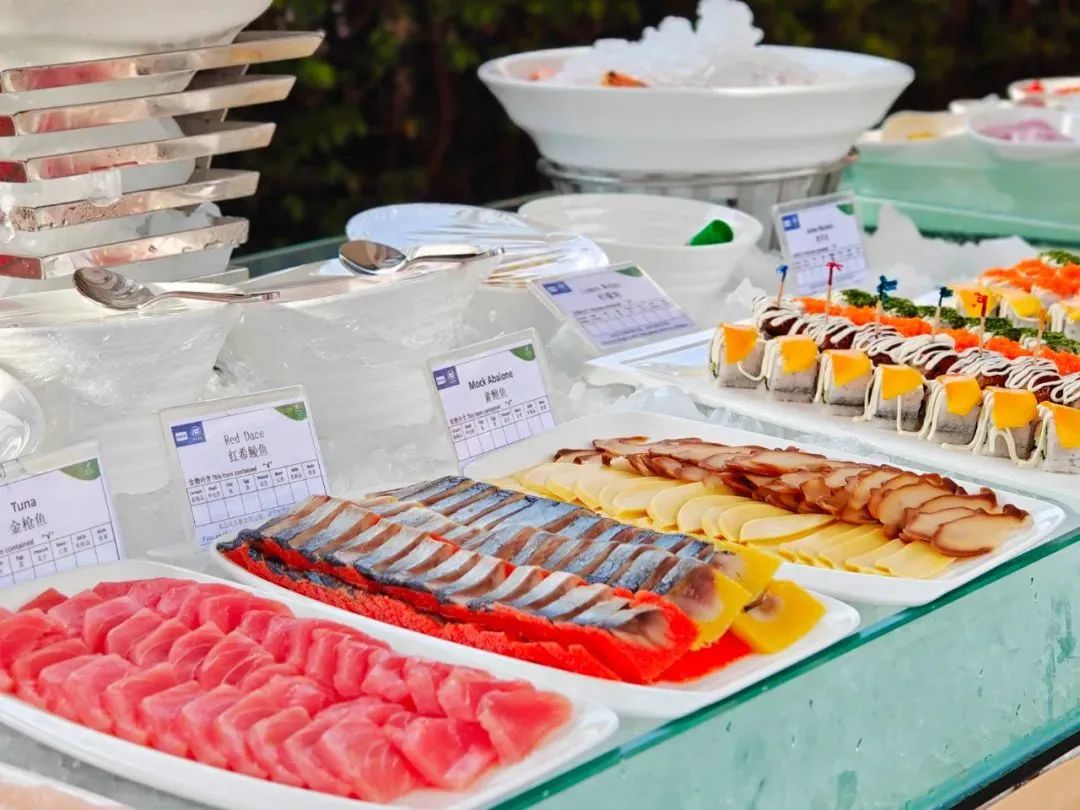 来到这里吃自助当然要到海鲜区逛一圈,基围虾,蓝口贝,翡翠螺……多种多样的新鲜海鲜随意畅吃的感觉真棒啊,新鲜上桌,你可不能错过了,让人瞬间感觉爱了!