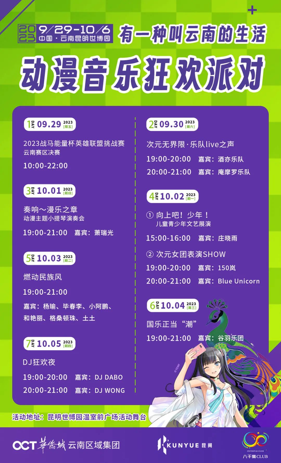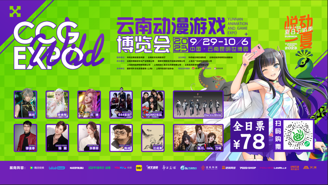 CCG EXPO带着一贯火爆,电力十足的动漫旋风,首次从上海来到昆明。昆明世博园秀丽的风景,古老的非遗传承、多彩民族风情与IP活动,融合一体的室外活动,知名声优、舞见、UP主、coser云集,带来精彩的舞台演出,更有众多国内一线大厂腾讯视频、爱奇艺动漫、优酷动漫、bilibili、阅文动漫等,携《完美世界》、《斗罗大陆》、《凡人修仙传》、《暗河传》、《逆天邪神》、《全职高手3》……