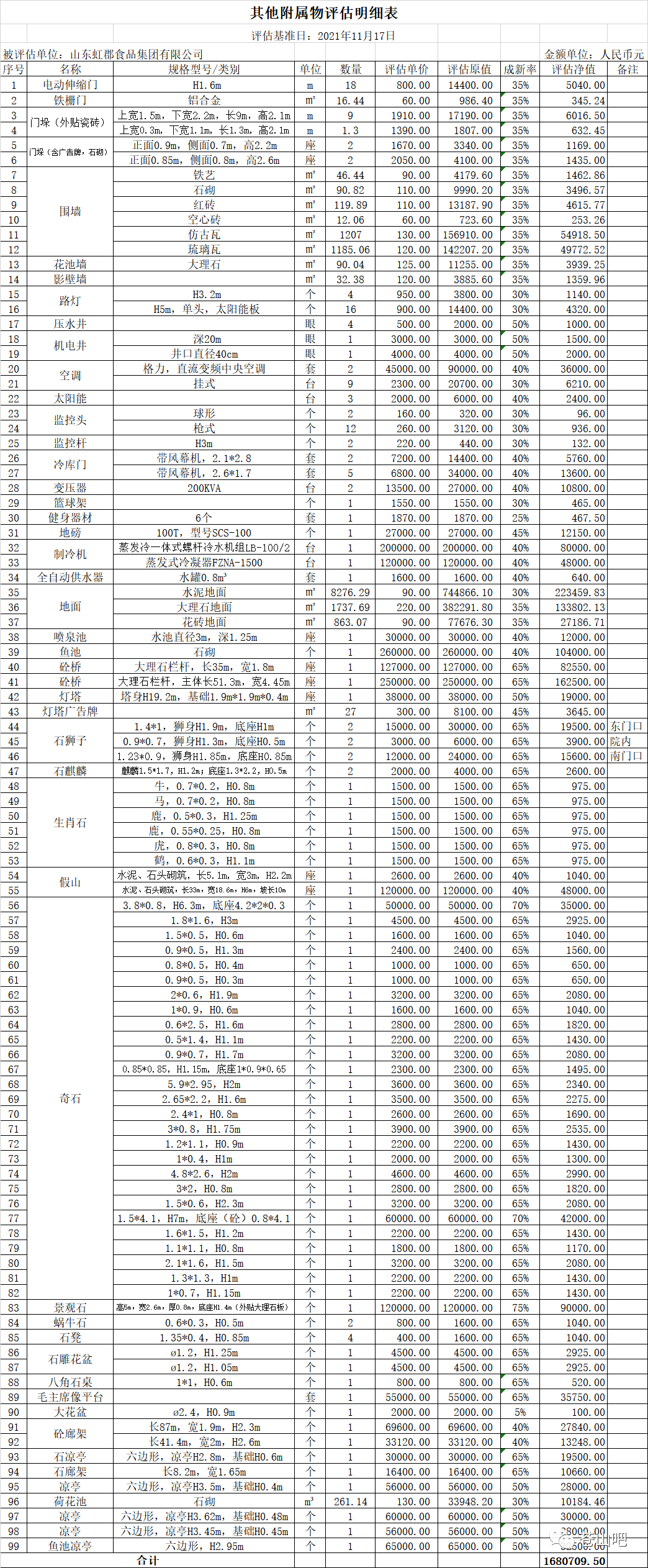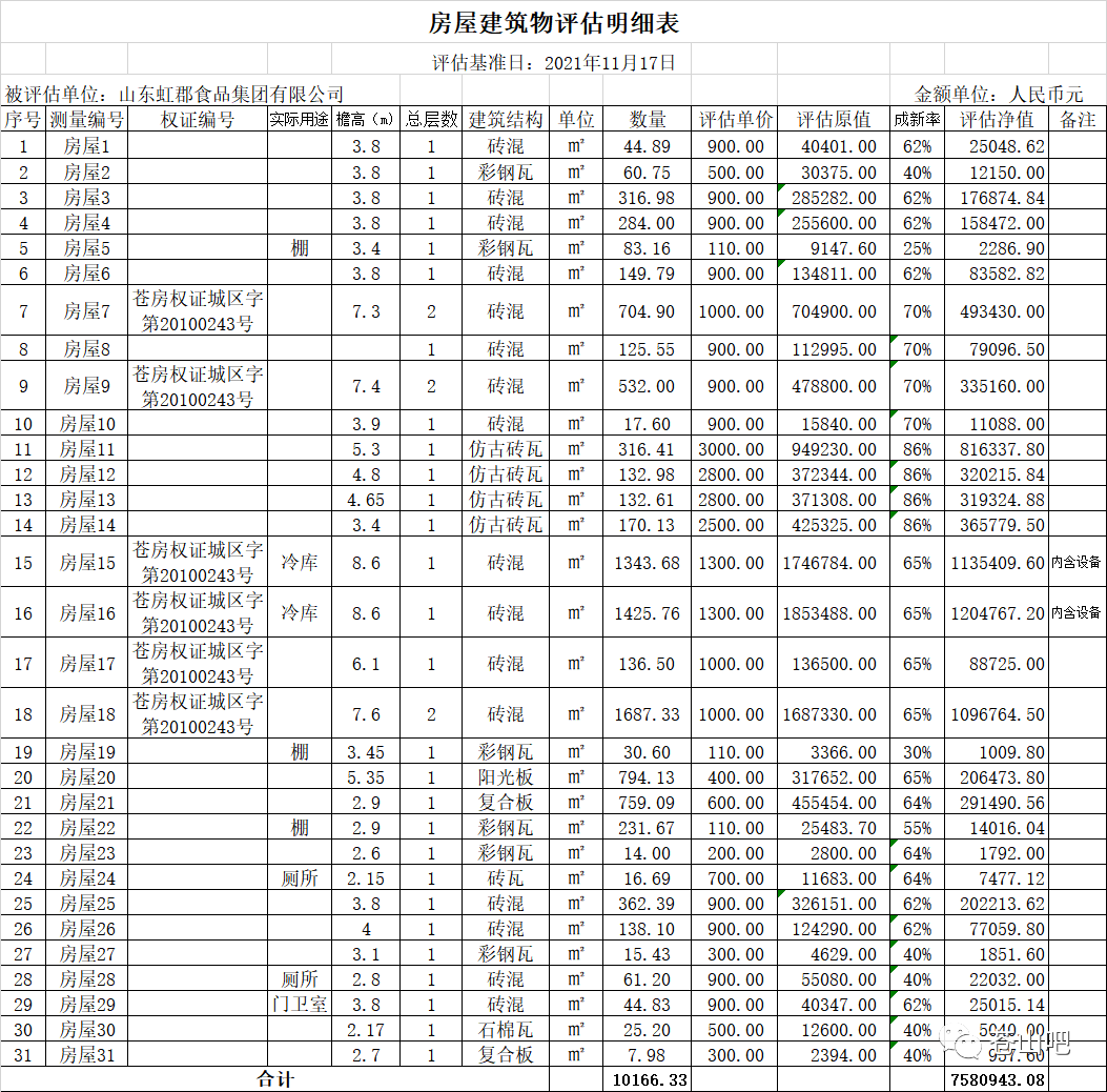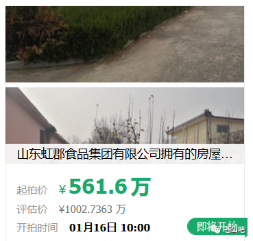 一、拍卖标的:山东虹郡食品集团有限公司拥有的房屋建筑物及其他地上附属物等。