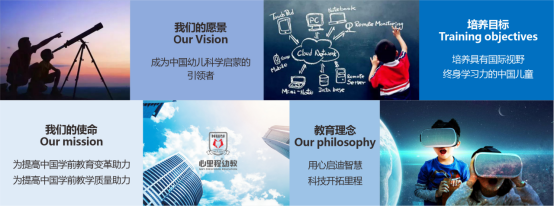心里程幼教是中国儿童科技启蒙教育的引领者,践行“用心启迪智慧,科技开拓里程”的教育理念,聚集了一群志同道合、与时俱进且富有教育情怀的先进教育工作者,有毕业于常青藤名校的精英留学生团队、有全国高校机器人教育联盟技术组专家成员等,一起扛起为提升中国学前教育变革助力、为提高中国学前教育教学质量助力的旗帜,致力于成就儿童五大特质:科学素养、创造力、国际视野、领导力和健康体魄,培养具有国际视野、终身学习力的中国儿童。