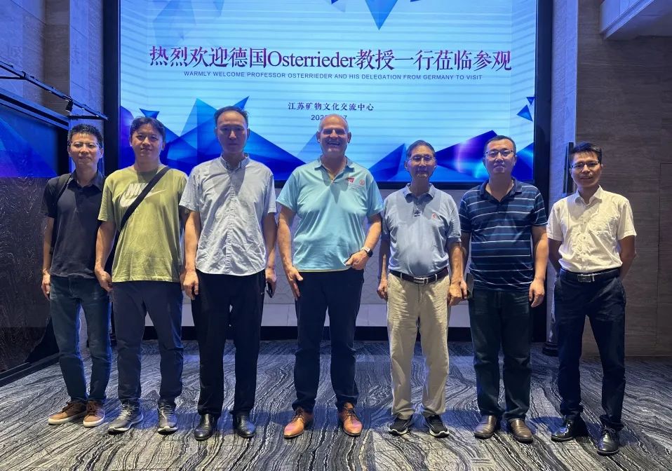 9月17日,德国柏林自由大学Nikolaus Osterrieder教授与南京农业大学陆承平教授一行在农科院学术交流之际,出于对矿晶的热爱,到访江苏矿物文化交流中心,并在江苏江文展示展览公司招商总监曹明、《宝藏》杂志主编孙国梁等人的陪同下,开启了一场矿物文化之旅。
