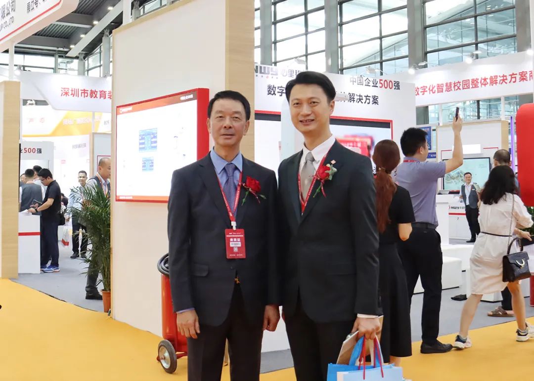 香港教育装备行业协会会长尹继贤(右一)莅临心里程展位指导参观