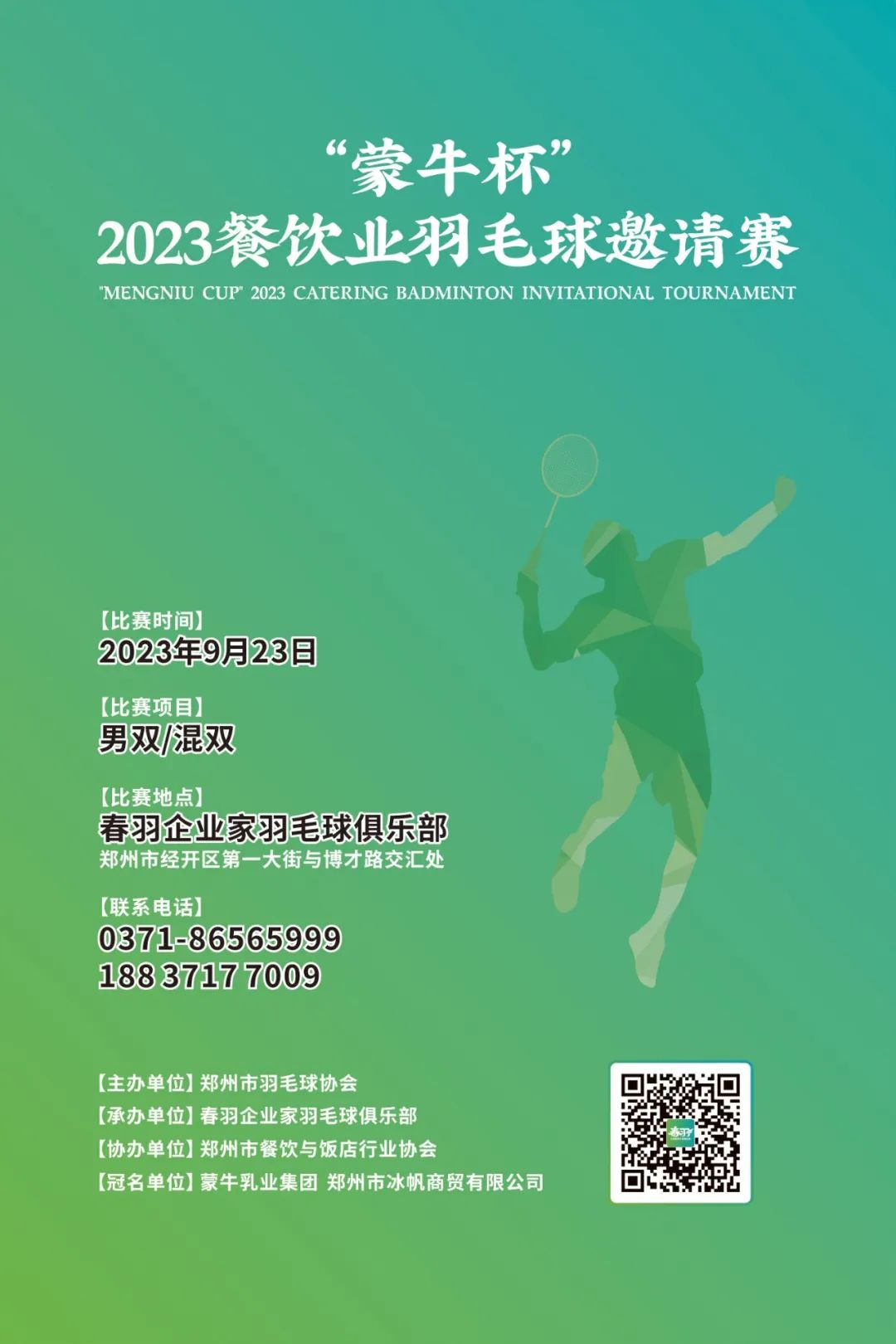 此次邀请赛,由郑州市羽毛球协会主办,春羽企业家羽毛球俱乐部承办,郑州市餐饮与饭店行业协会协办,蒙牛乳业集团、郑州市冰帆商贸有限公司冠名支持。