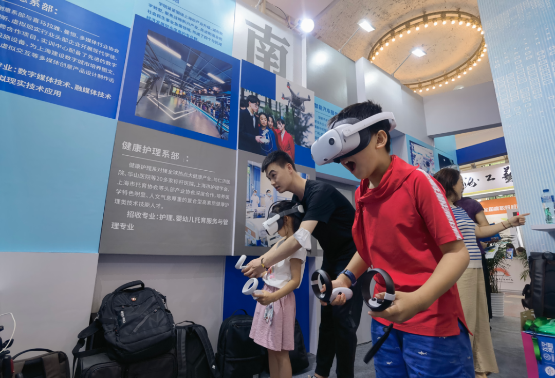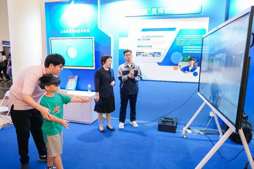 “共创一流城市教育 共筑教育强国梦想”,2023第二十届上海教育博览会于9月15日-17日在上海展览中心举行,线上将持续展出至10月底。作为上海市教育信息化应用标杆培育校,上海南湖职业技术学院“‘5G+XR’智能(网联)新能源汽车技术虚拟仿真实训教学系统”获评去年线上教博会“教育数字化转型”十佳应用场景案例。学院今年应邀参加了教博会的市级展馆互动展示区展示,同时这也是南湖首次亮相线下教博会。