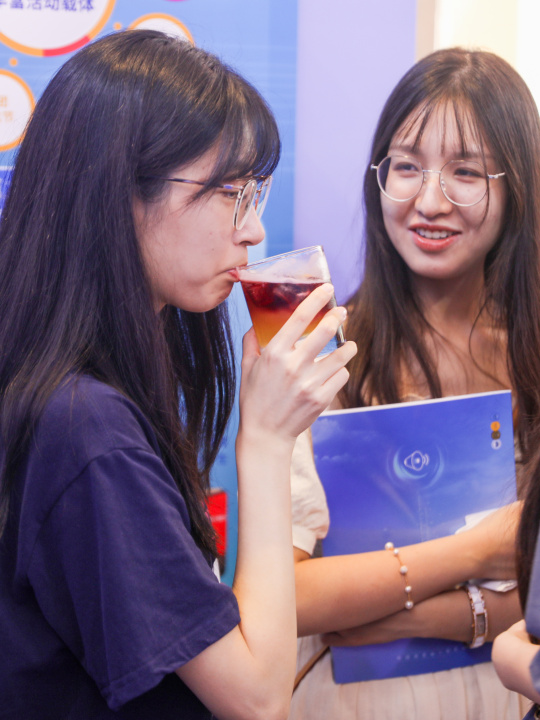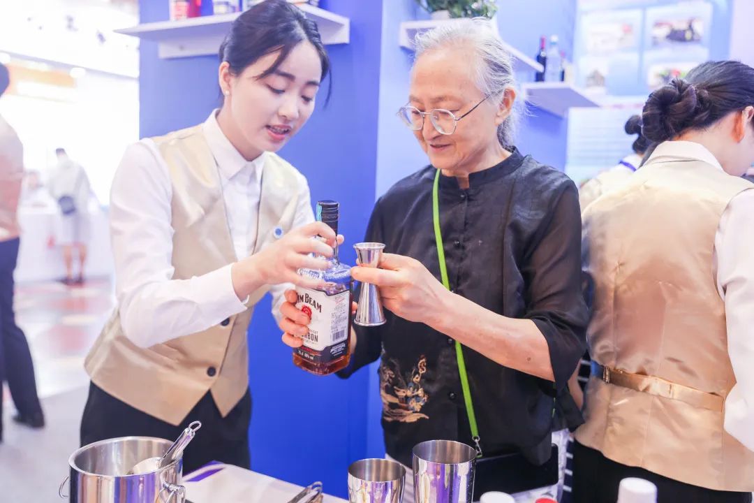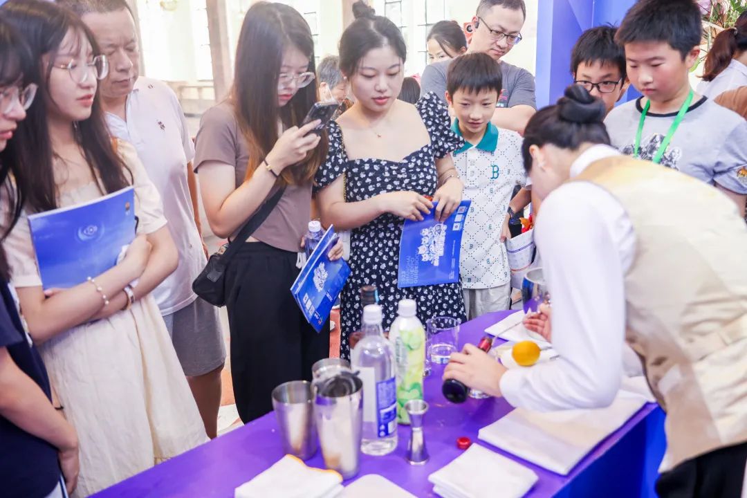 食品与旅游学院专业教师吴茜、祝呈琦带领学生团队将调酒台搬到了教博会现场。在这里,观众们可以尝试调酒并进行品鉴,亲身体验现代技艺与传统酒文化碰撞出的万般可能。