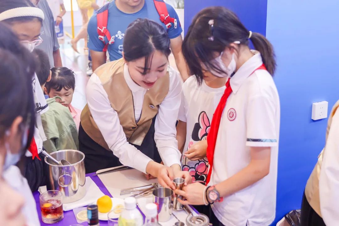 非常有幸我们的专业能作为学校特色项目参与教博会展示。在活动现场,我感受到了大小观众们对于调酒体验的热情,这让我既惊喜又自豪。