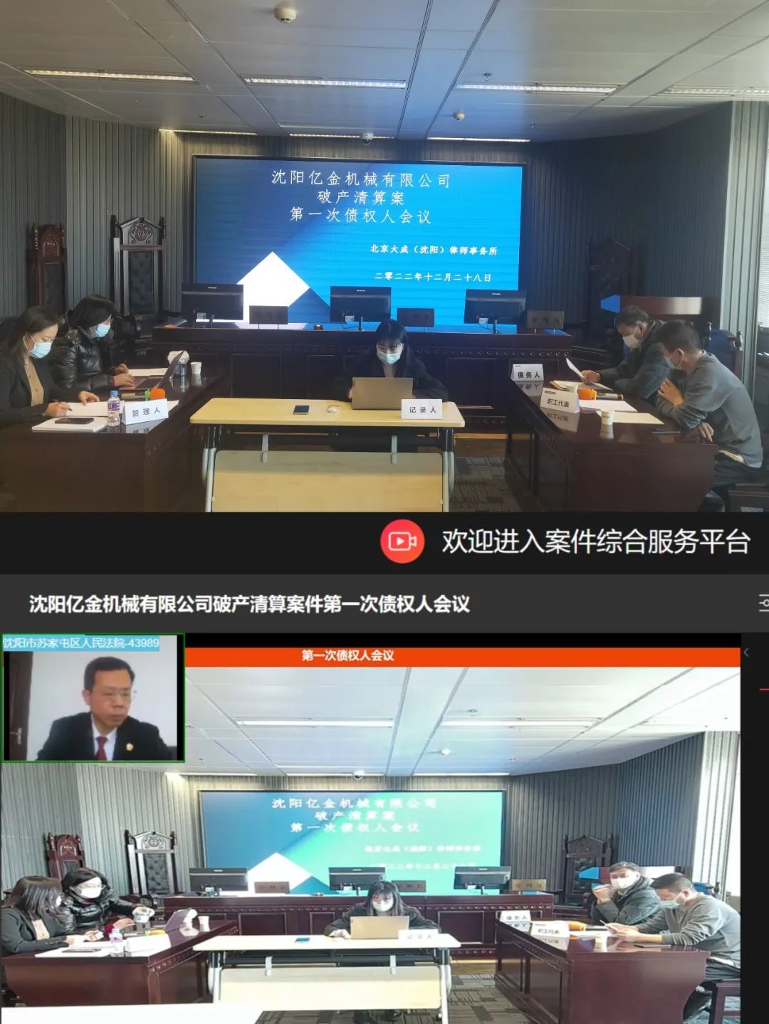 为了节约各债权人的参会成本,提高会议效率,经管理人与沈阳亿金机械有限公司破产清算案主审法官汇报,确定了以网络会议的形式召开沈阳亿金机械有限公司破产清算案第一次债权人会议。2022年12月28日下午13:30时,在沈阳市苏家屯区人民法院主审法官的主持下,管理人朱红律师、王薇律师等出席会议,已提交申报材料的债权人通过线上与书面的方式参加了本次会议,会议顺利召开。