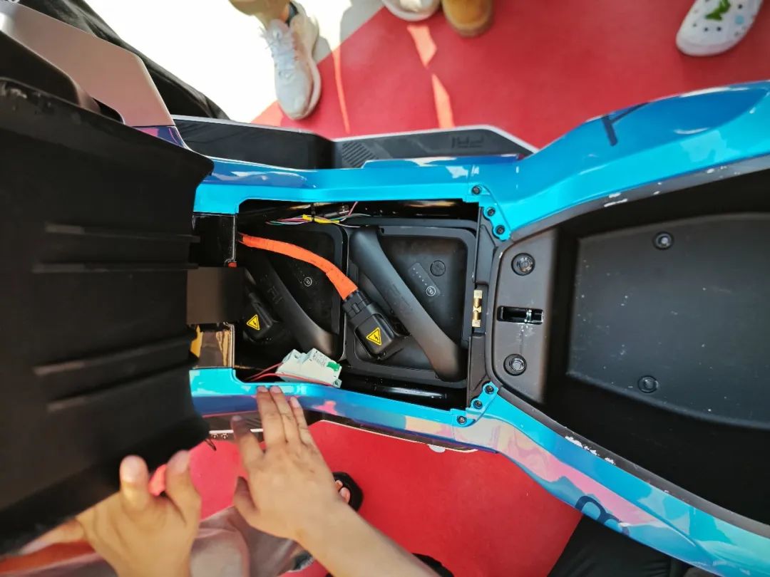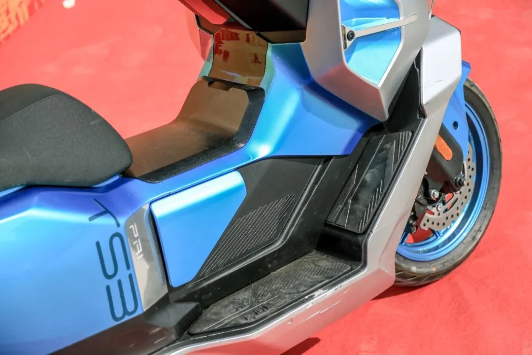 现场简单体验了一下工程样车状态的TS3。动力的释放是比较易控的,电门的调校设定相对线性,这样的特性对于一款电车来说意味着更好上手。乘坐方面TS3有着一块大面积且平直的坐垫,单人或者双人骑乘都有不错的乘坐空间,前部也有良好的腿部空间,另外座下还有一个40L的座桶空间。驾乘方面一米四左右的轴距带来很稳定的操控性,一方面体现在高速时的稳定性,另一方面这款车在弯中也有良好的循迹性和安心感。