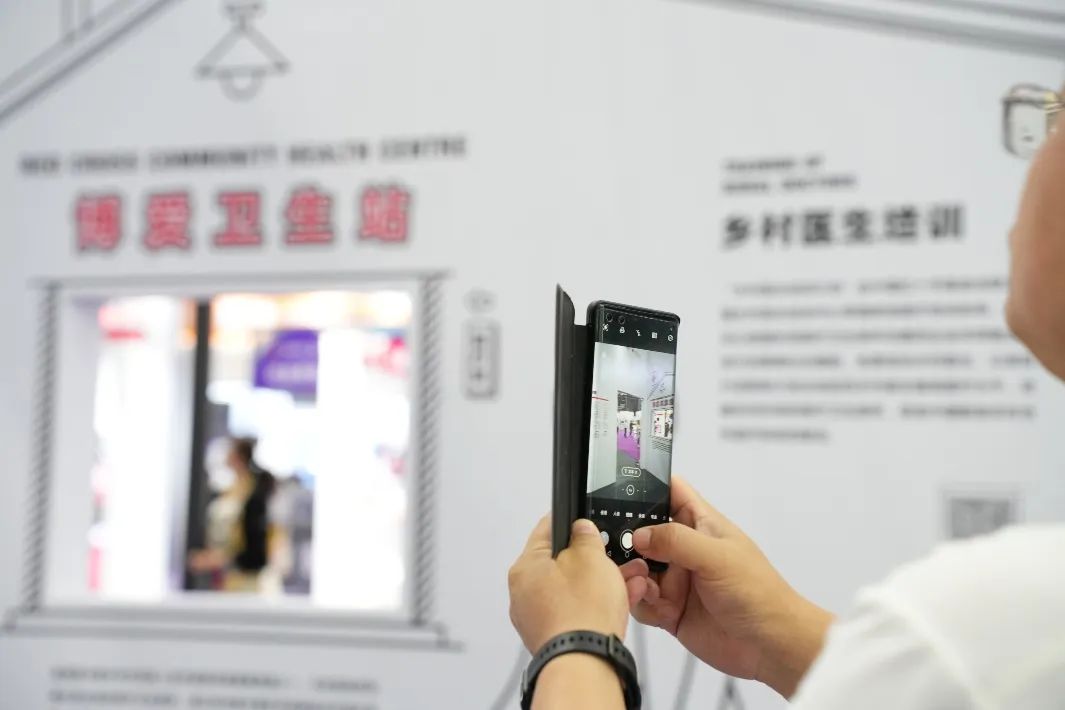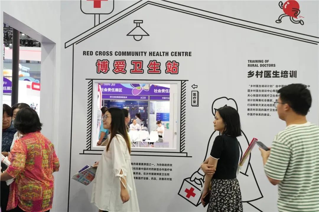 ▲观众在中国红十字基金会主题展览区驻足参观(左右滑动查看更多图片)