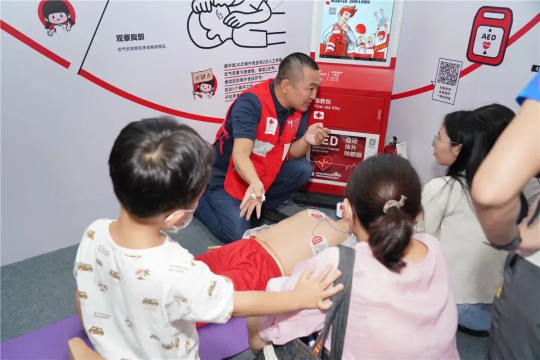 ▲中国红十字基金会荣获第十届中国慈展会“最具人气参展机构”、“十届致谢单位”两项大奖中国红十字基金会“关爱生命 救在身边”主题展位于本届慈展会“慈善高质量发展成果”馆,展览围绕“守护生命与健康,红十字救在身边”的机构使命,运用中国红十字基金会IP形象“小红”和应急救护主题赛事“红气球挑战赛”极富特色的“红气球”元素,重点展现中国红十字基金会在应急救护和乡村振兴领域的公益项目,同时通过线下沉浸式体验互动的形式,普及推广应急救护、防灾减灾知识和技能,让展览不仅是展示,更是公众学习相关知识的开始,倡导公众树立应急救护意识,提升自救互救能力,推动形成“人人学急救,急救为人人”的公益氛围。此次主题展览呈现三大亮点,一是“跟着小红学急救”,“小红”与急救培训老师一起向现场观众讲授心肺复苏等急救技能,以及应急救护一体机和AED的使用方法。二是打造“小红救在身边”场景,通过将交通伴行、景区救护、校园守护、防灾减灾、健康促进等项目元素融入展区中打造的地铁交通、旅游景区、校园、乡村等多个日常生活场景,展现中国红十字基金会在参与应急救护和乡村振兴等工作中的行动,带领观众沉浸式体验,充分感受“红十字救在身边”。三是“小红提问您来答”,展览设置“急救灯谜”区域,通过日常急救小常识问答的形式,丰富展览的科普性和趣味性,吸引了大量观众驻足了解和参与。