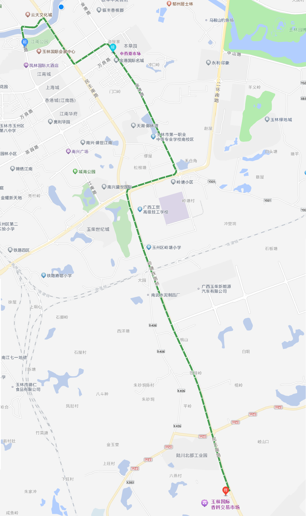 途径点:陆川二运站、党校路口、新公园路口、沙坡路口、大广场、米场镇路口、马坡镇路口、玉林国际香料市场。