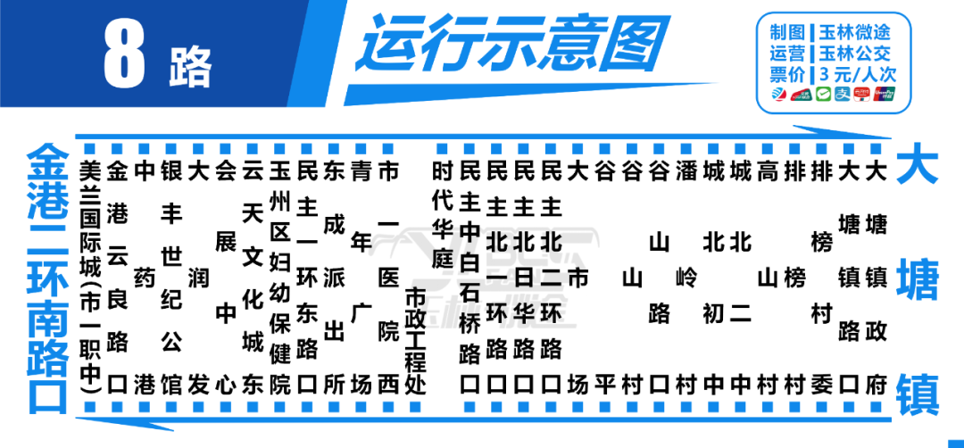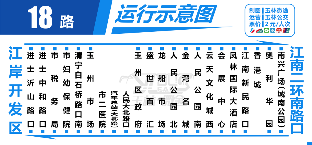 →8路线途经“青年广场”、“会展中心(民主南路站)”、“中药港”等站点→18路线途经“汽车总站”、“玉州区政府”、“盛世百汇”、“会展中心(江南路站)”等站点部分来源:玉林市公共汽车公司、陆川发布