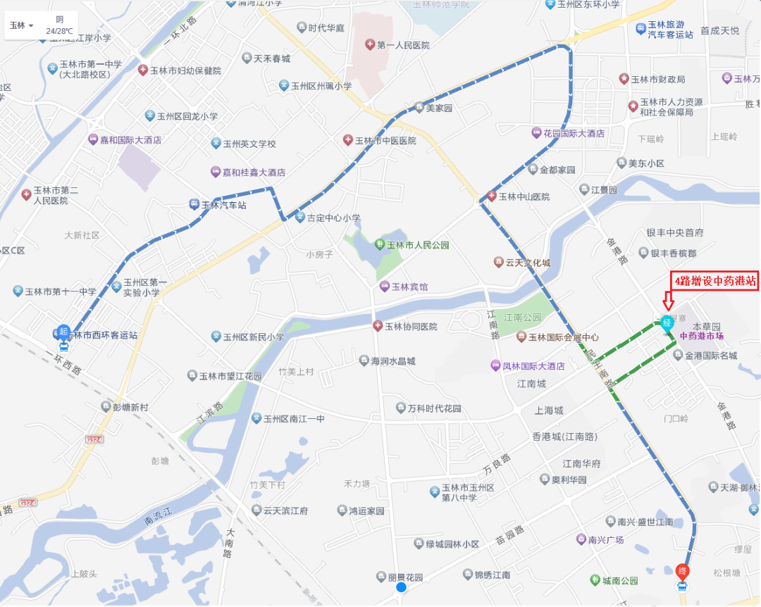 27路临时增设“中药港”、“玉林国际香料交易市场”站点