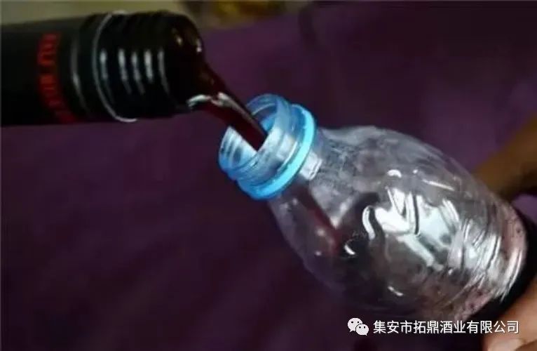 第二步,品鉴后将葡萄酒倒入塑料瓶中。