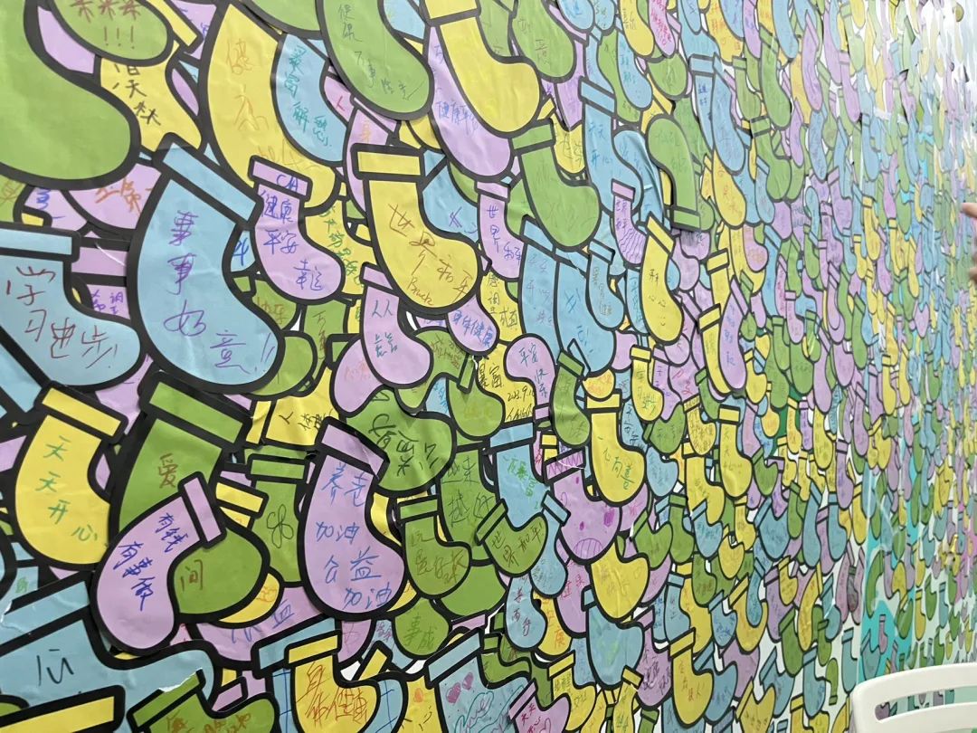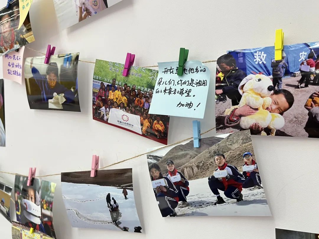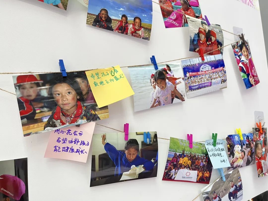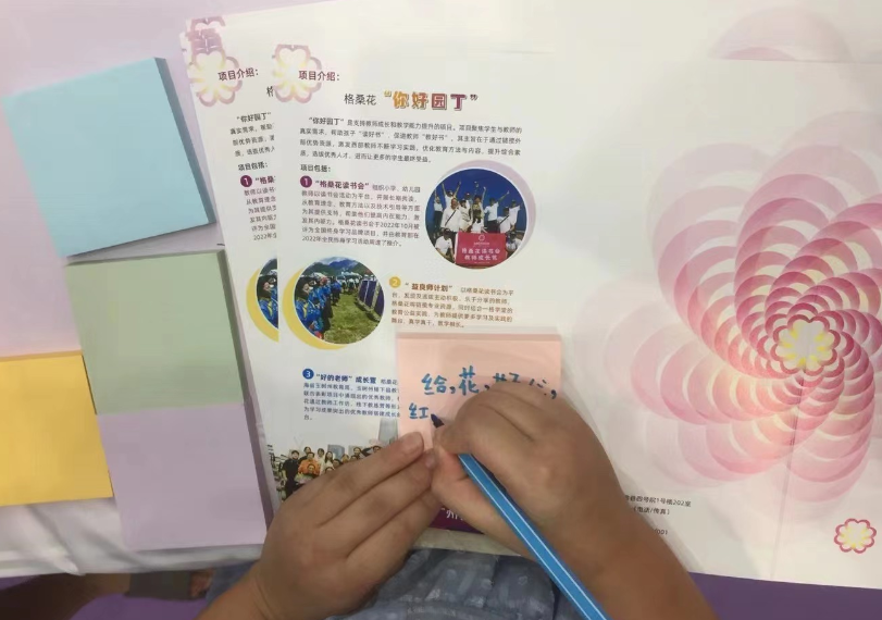 ▲一位孩子在看到墙上展示的项目照片后,留下了稚嫩而纯真的祝福