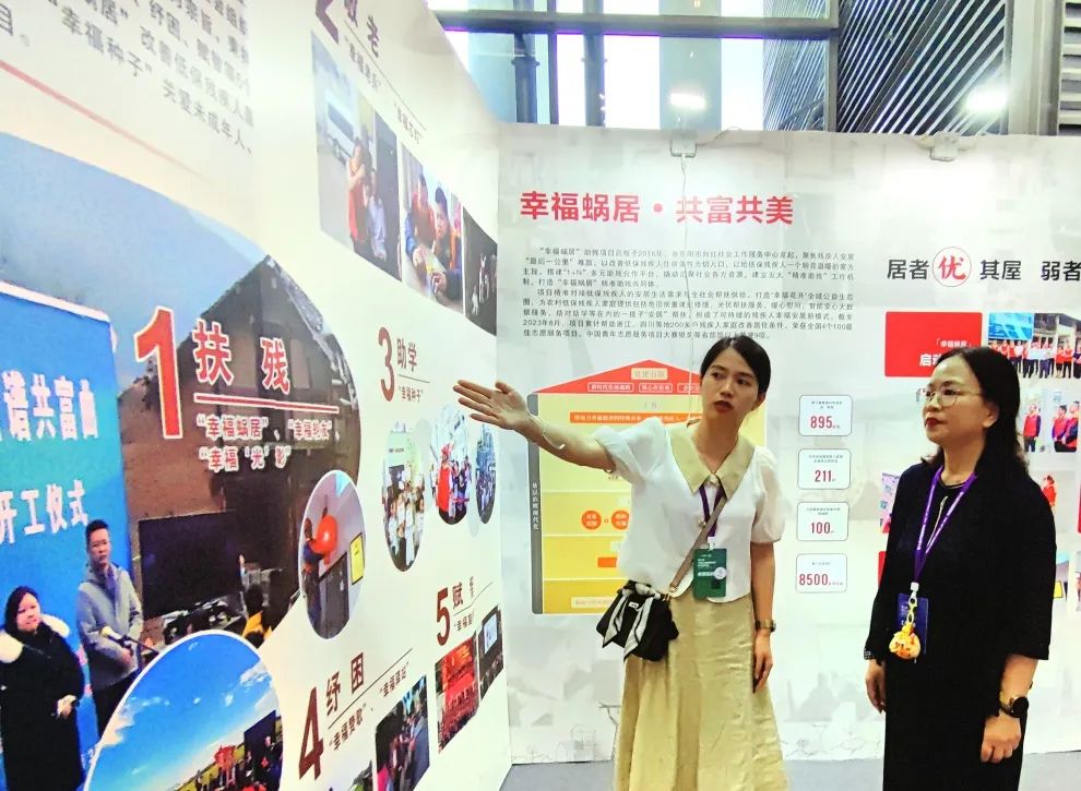 向红中心展区采用动静结合的形式,视频展播区播放《心中的日月》《看海》等纪录片,吸引众多观展者的关注,并在项目展示区,通过展板,画册等方式,将“幸福蜗居”“幸福轮友”“幸福‘光’影”等九大幸福系列项目逐一向观展者们展示介绍。