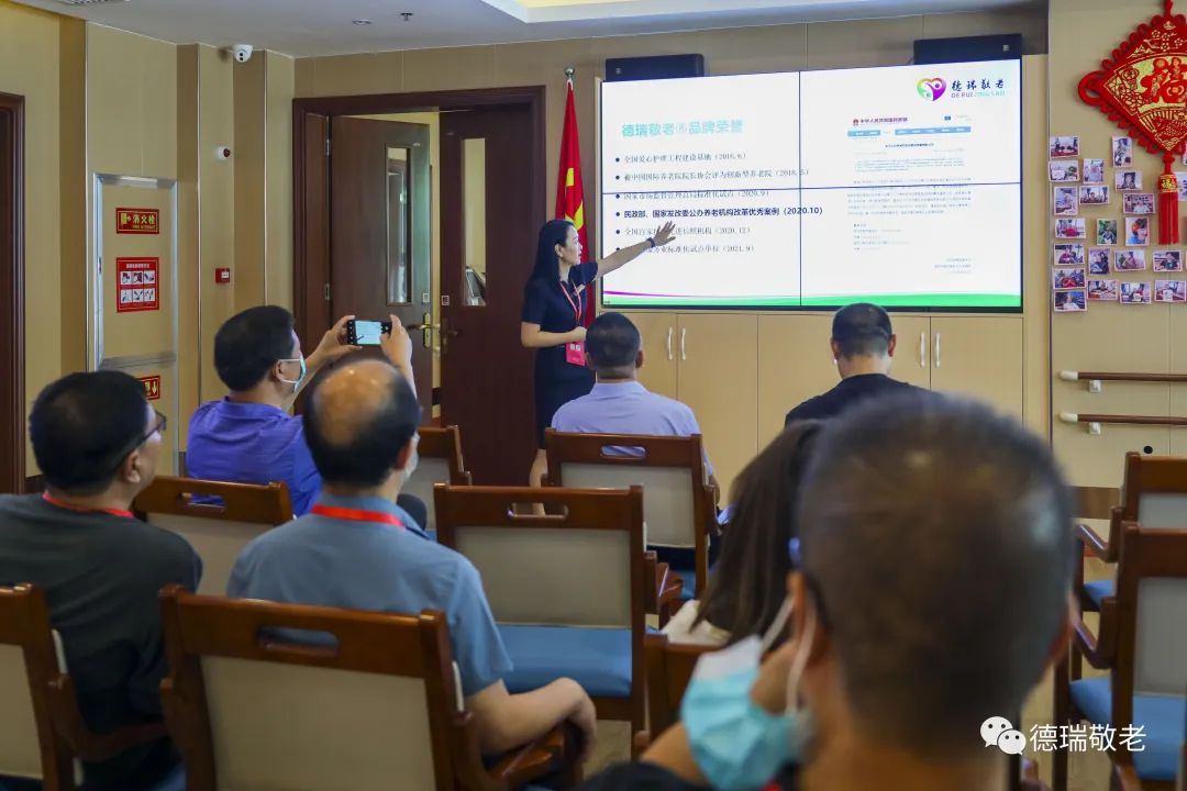 随后,碑林区民政局社会事务科科长田新社陪同湖北、安康等地的50多名养老同行一行前往陕西德瑞敬老集团第五家分院碑林区交大综合养老服务中心进行参观,参观过程中总院长王瑞女士、交大综合养老服务中心执行院长吕佳丽就德瑞敬老历年来取得的荣誉、经营理念、发展战略、功能服务板块等方面做了详细介绍。并带领代表们参观了失能和失智生活区等功能区域进行了细致参观,再次得到了参观团一致好评。